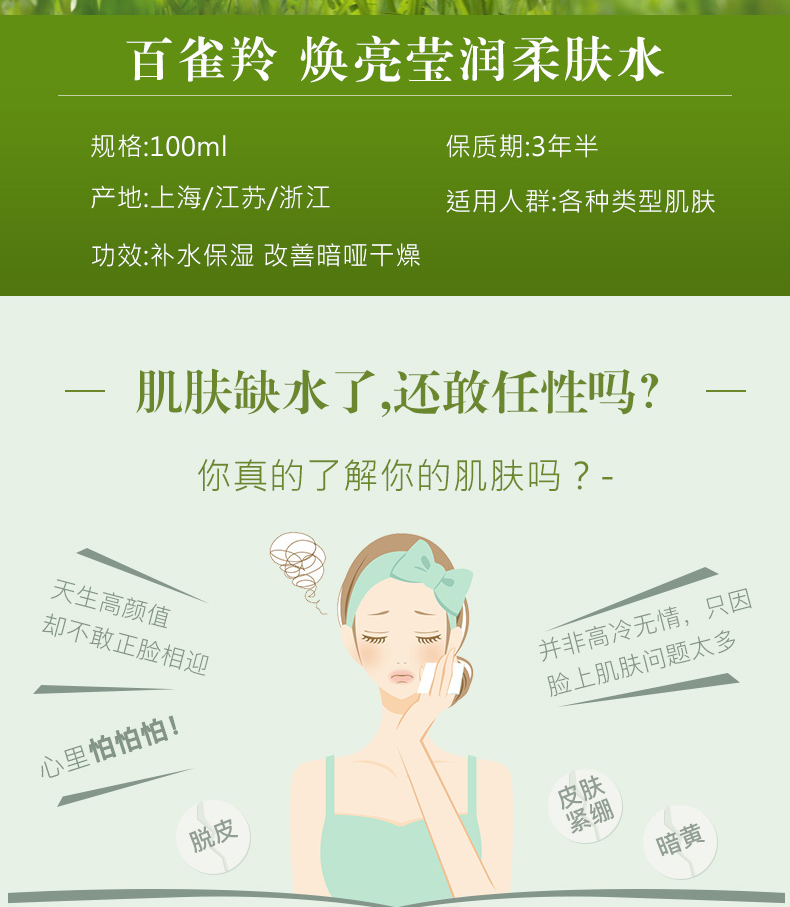 國貨正品百雀羚草本煥亮保濕柔膚水