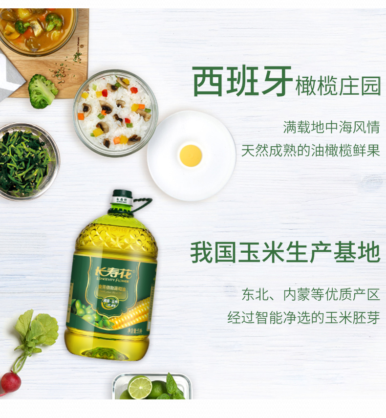 長壽花橄欖玉米調和油5L物理壓榨食用油植物油玉米橄欖油