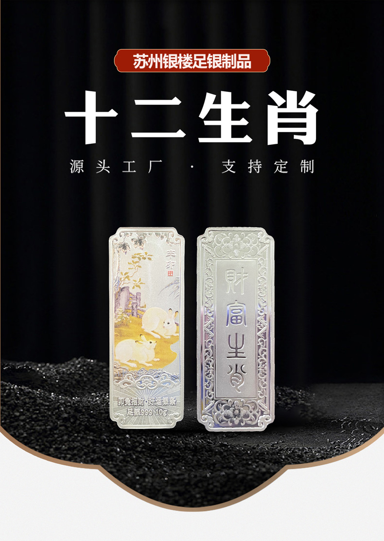 蘇州銀樓兔年銀條999足銀12生肖純銀中秋送禮收藏級送爸爸長輩