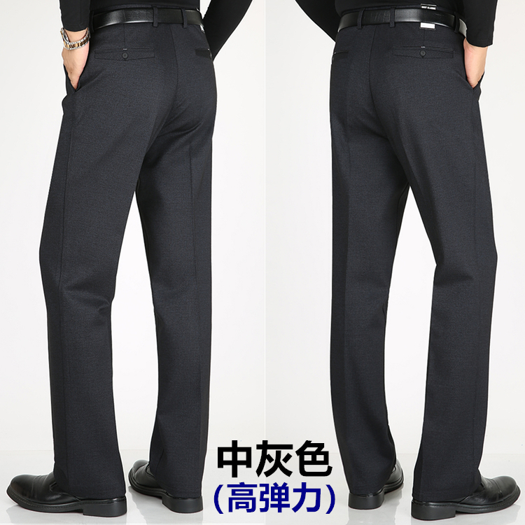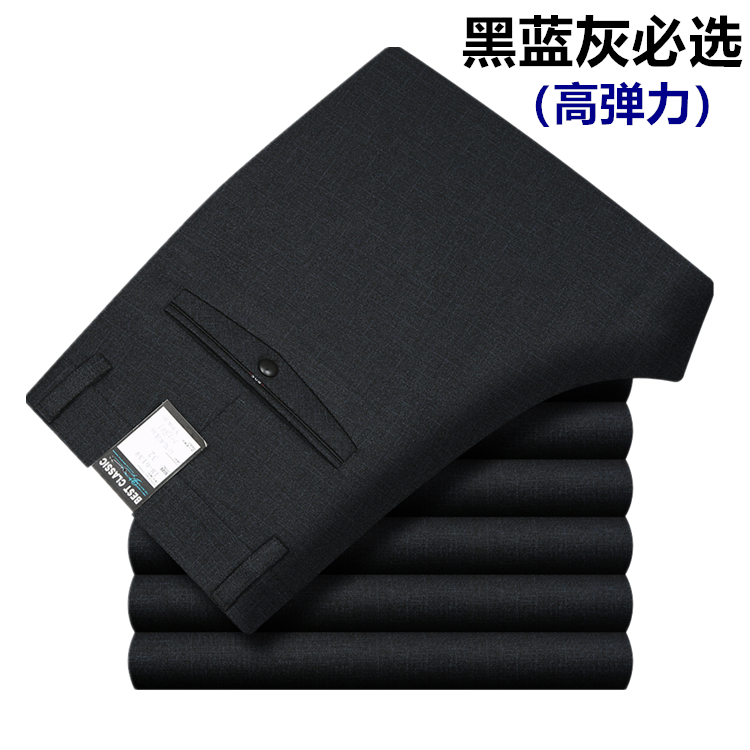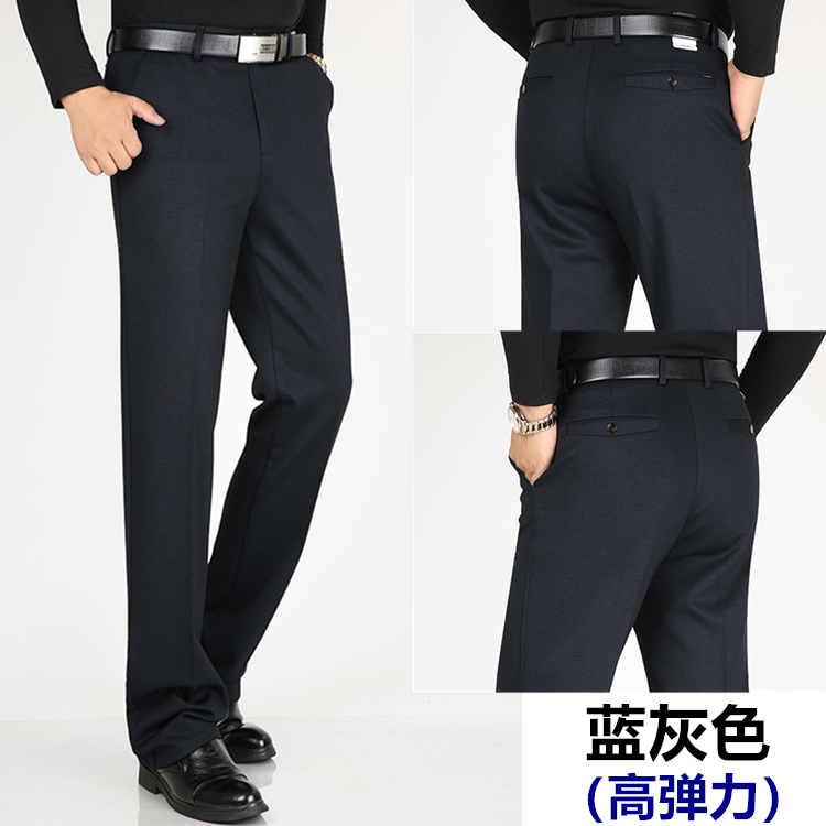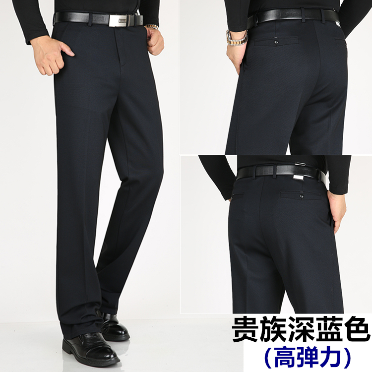 冬季厚款高彈力商務休閑高腰深襠寬松肥佬加肥加大碼中老年男長褲