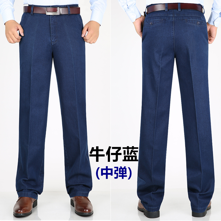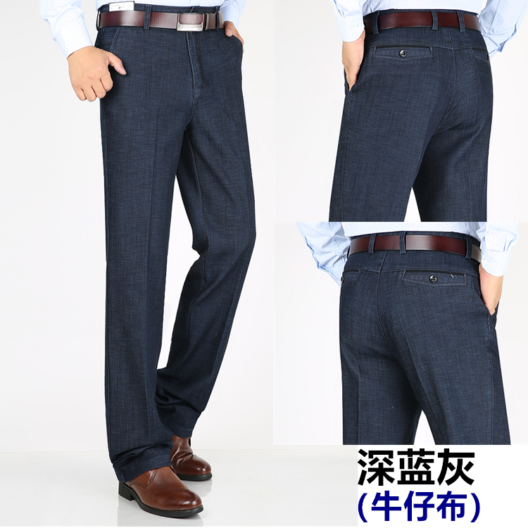 秋季新款彈力牛仔褲男士寬松直筒休閑長褲子男裝工作