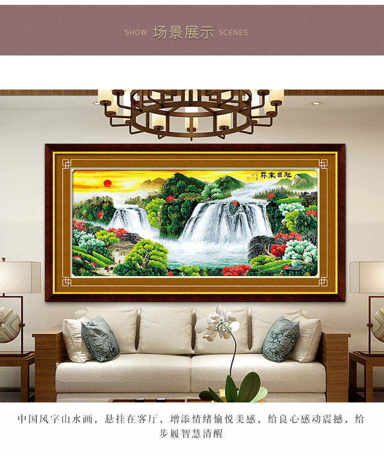 十字繡2023新款線繡客廳大幅自己繡手工禮物旭日東升大氣流水生財