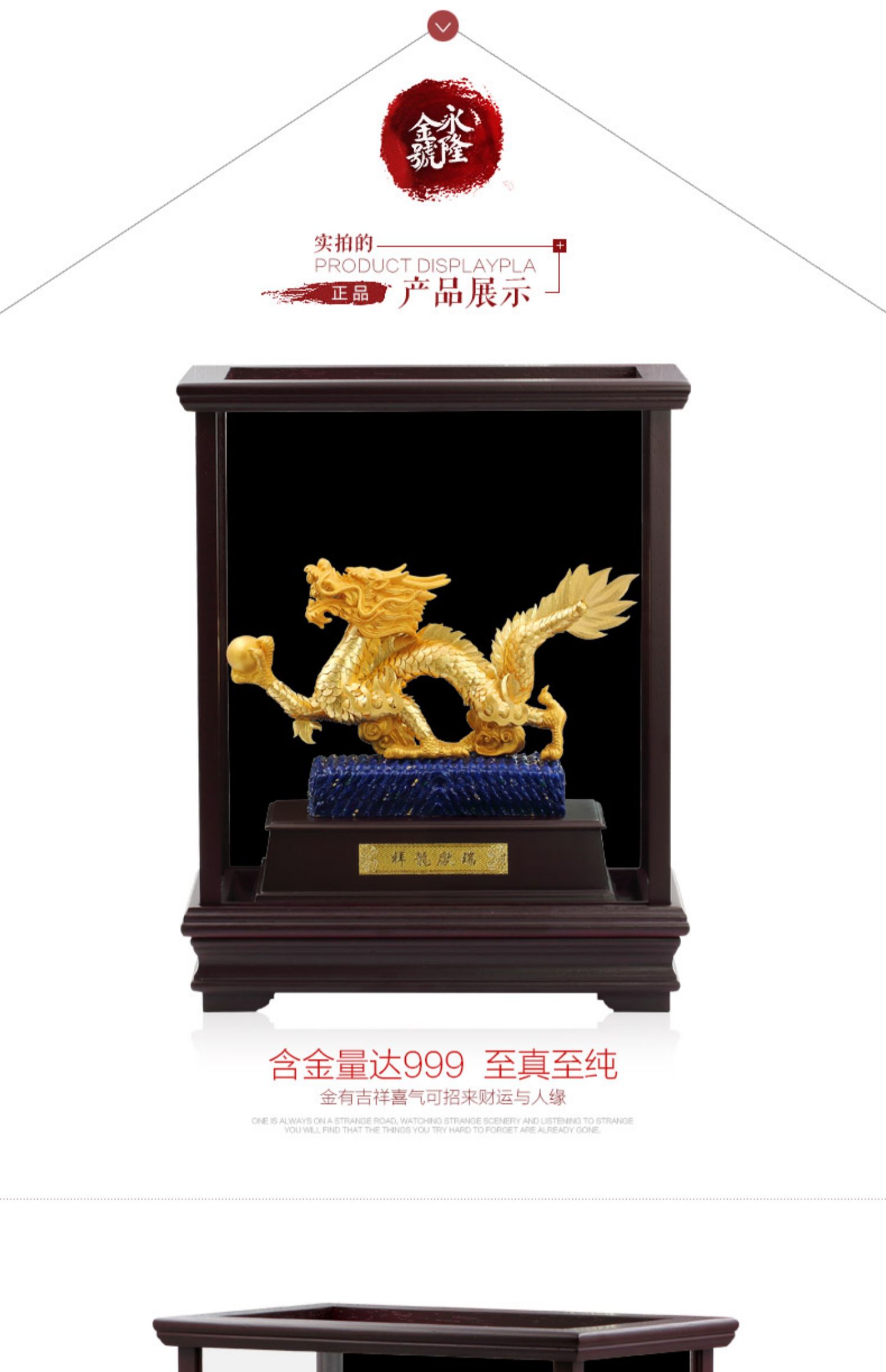 祥龍獻瑞足金金箔3D櫥窗實木框桌面擺件商務禮品慶典活動企業定制