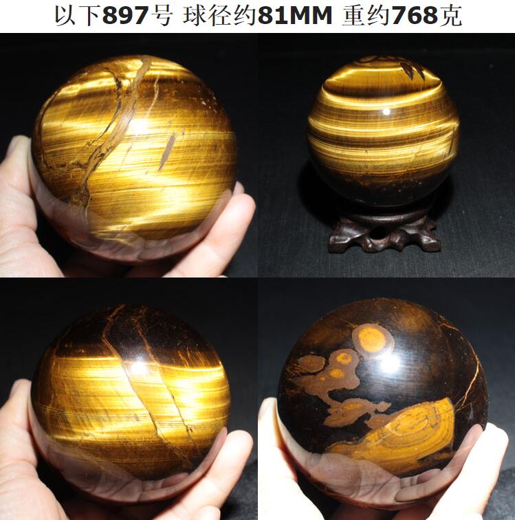 水玉冰魄黃虎石球 黃虎眼石把玩手把件 藍虎睛石球 水晶球擺件