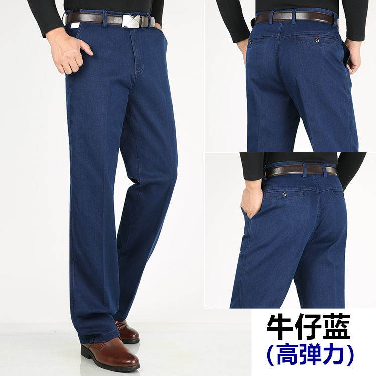 秋季新款彈力牛仔褲男士寬松直筒休閑長褲子男裝工作