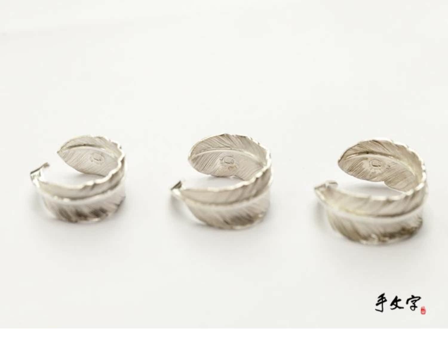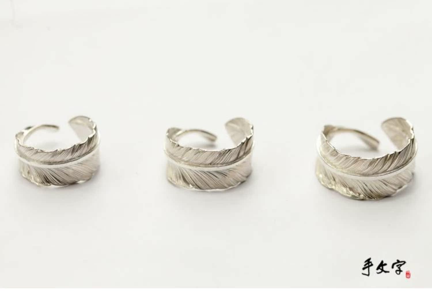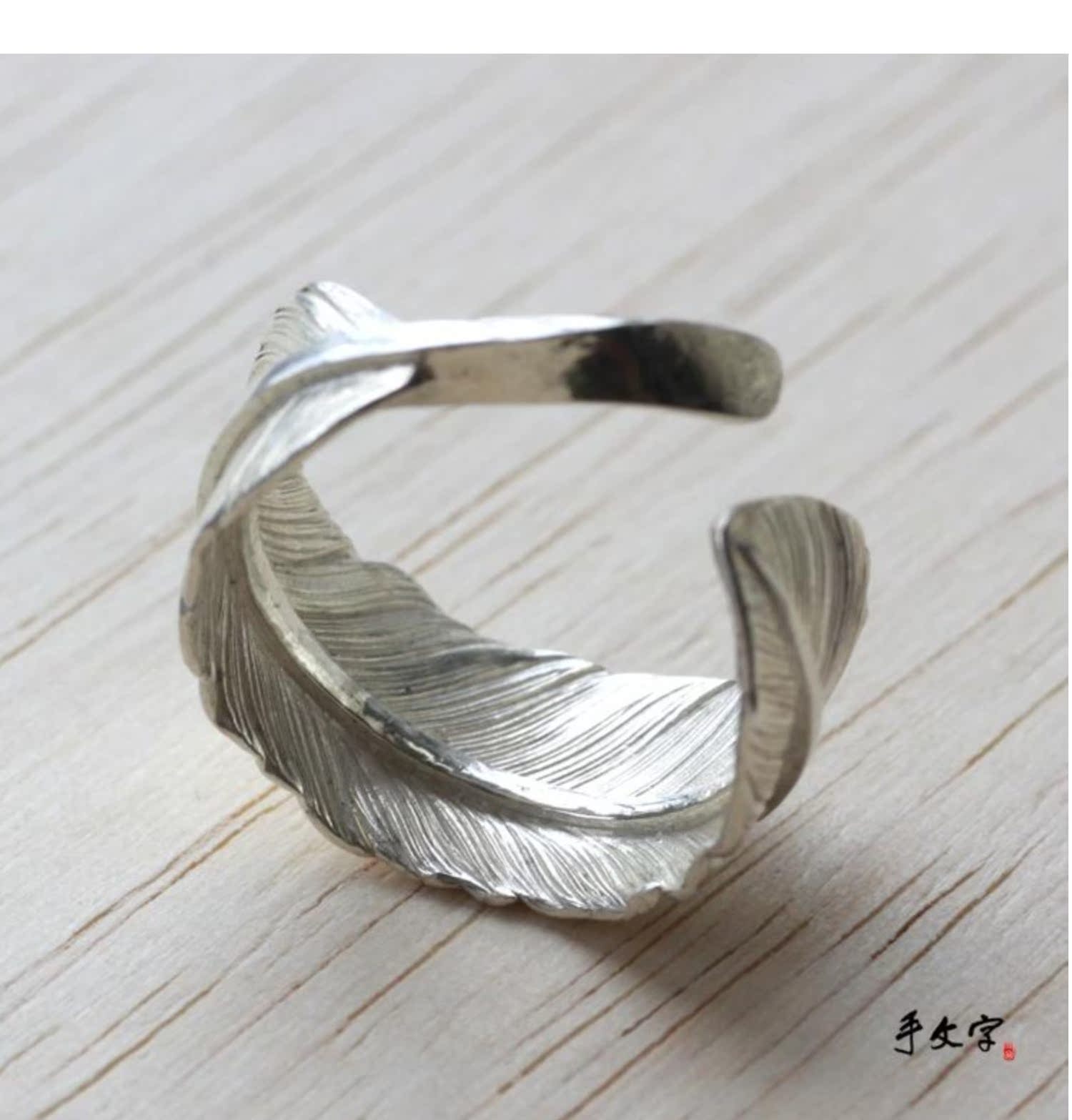 偶嶼原創純銀羽毛粗桿可刻字開口戒