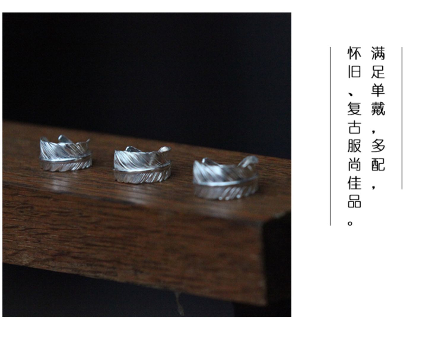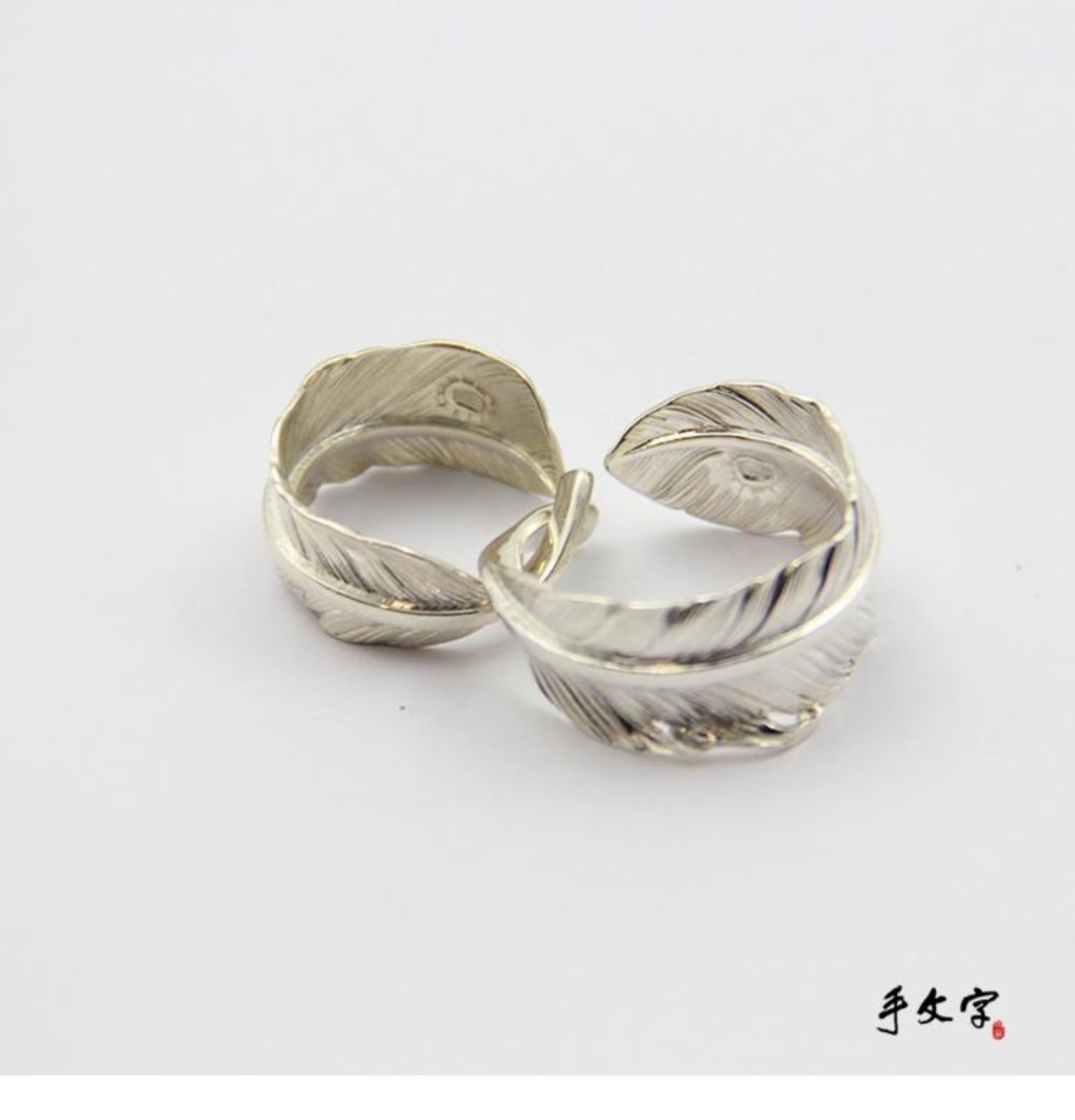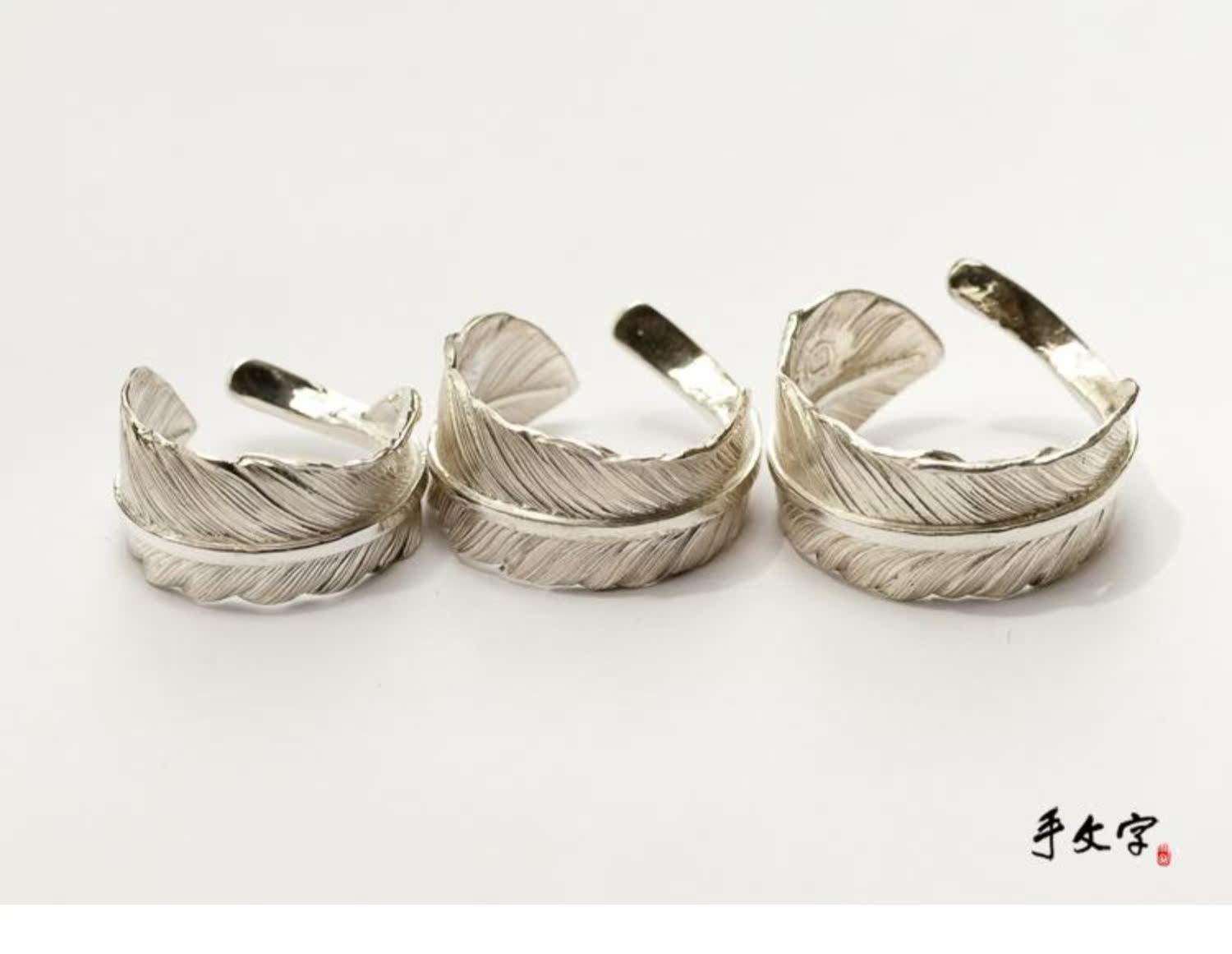 偶嶼原創純銀羽毛粗桿可刻字開口戒