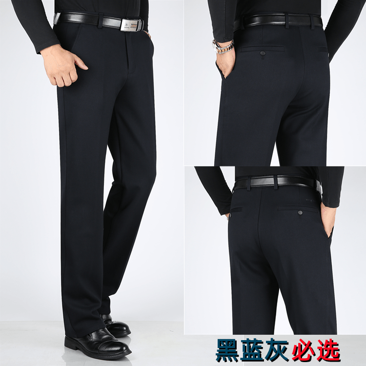 冬季厚款高彈力休閑高腰深襠寬松肥佬中老年加肥加大碼男褲子商務