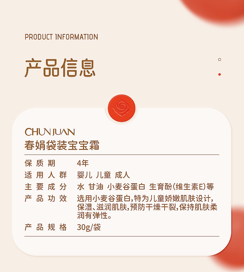國貨春娟30g*5袋裝嬰溫和寶寶霜