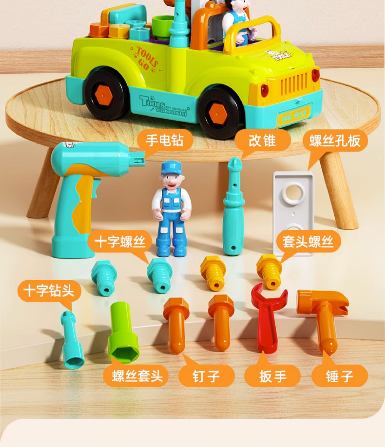 匯樂電鉆螺絲釘工程車兒童擰螺絲刀寶寶動手玩具工具卡車益智男孩