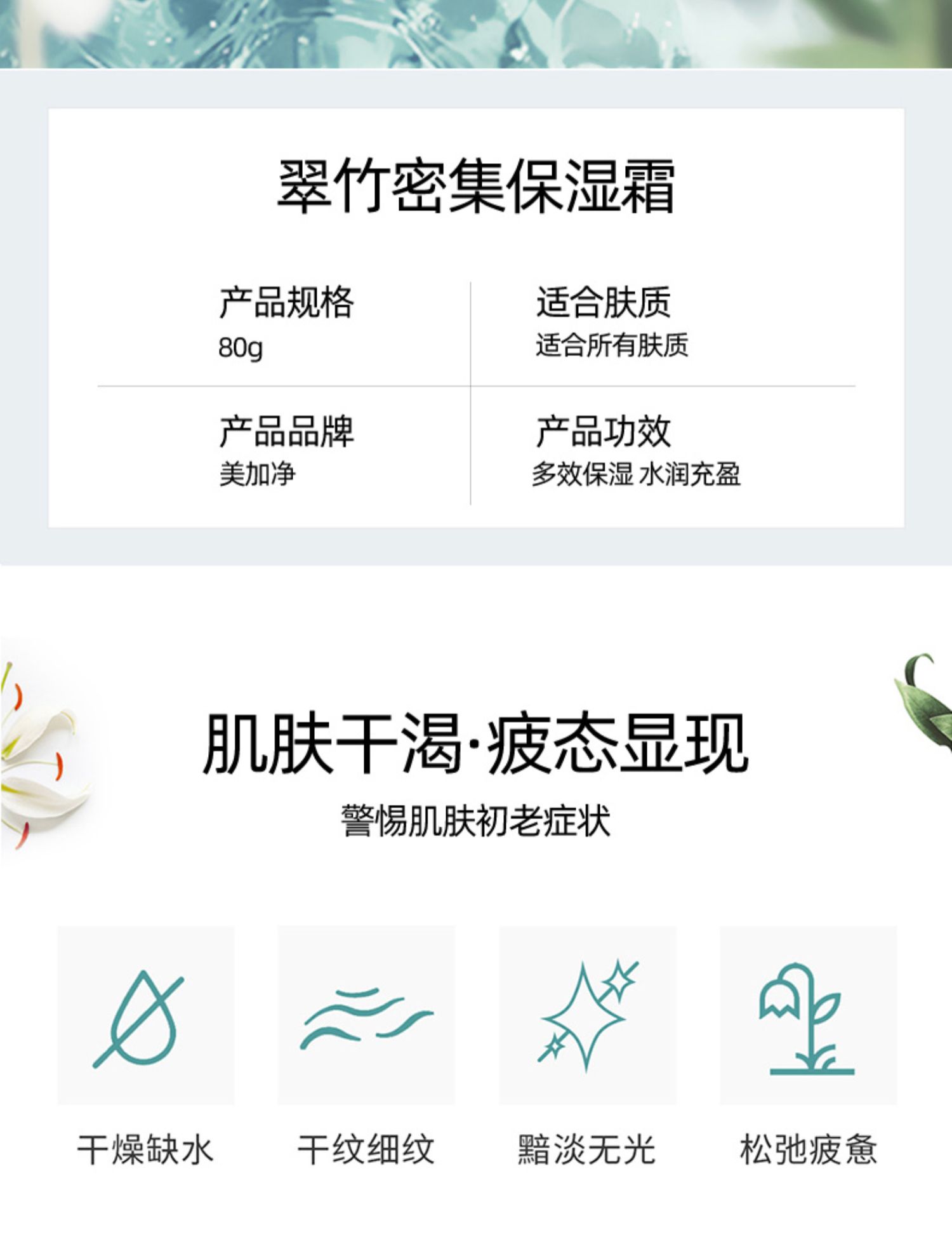 美加凈翠竹密集保濕霜面霜補水滋潤凝露女潤膚官方旗艦店正品國貨