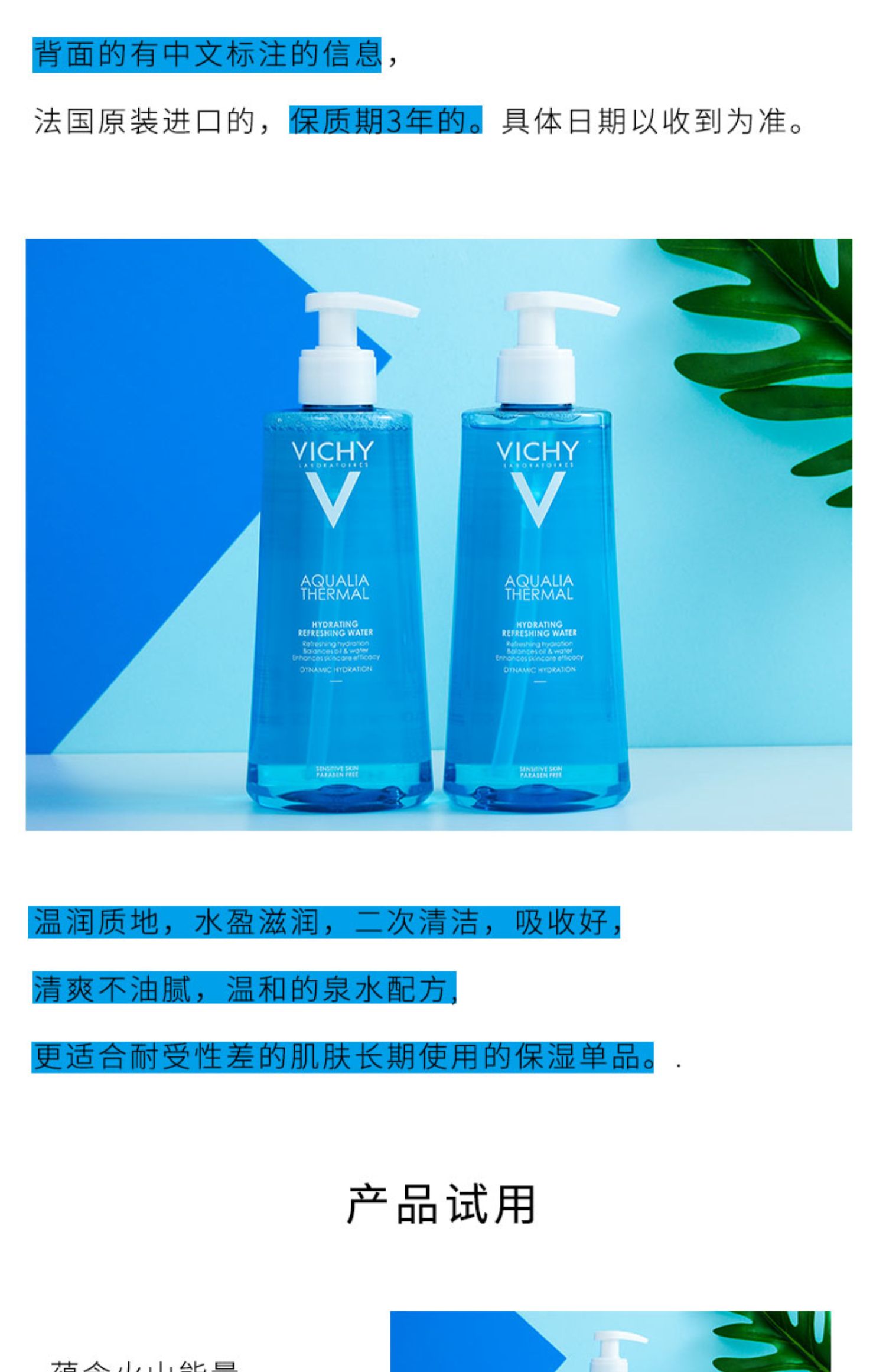 薇姿溫泉礦物水活爽膚水400ml清潤大藍水補水保濕清潤化妝水正品