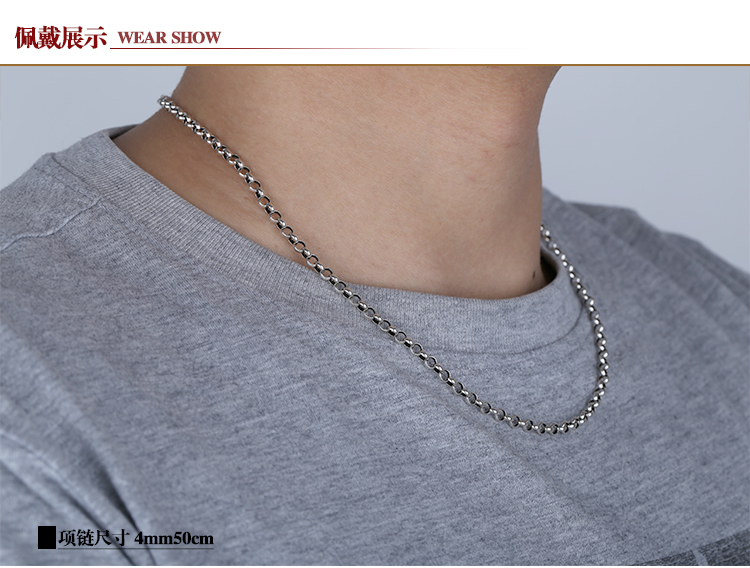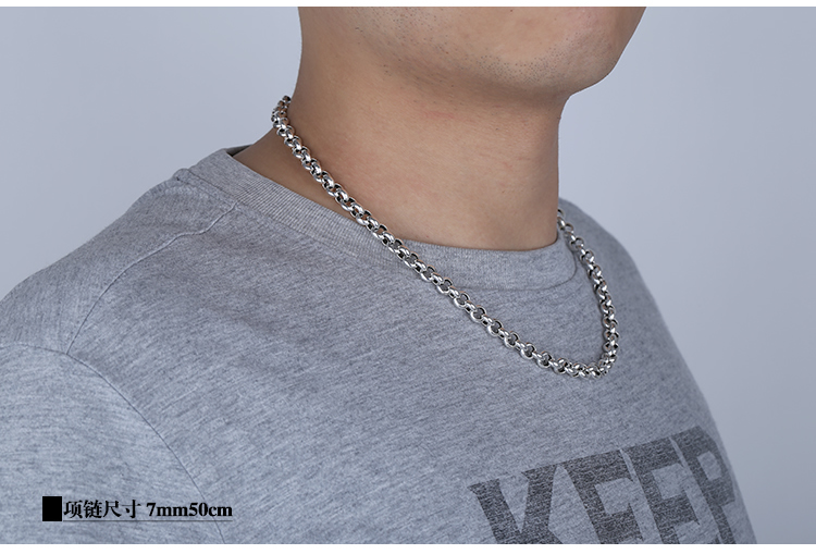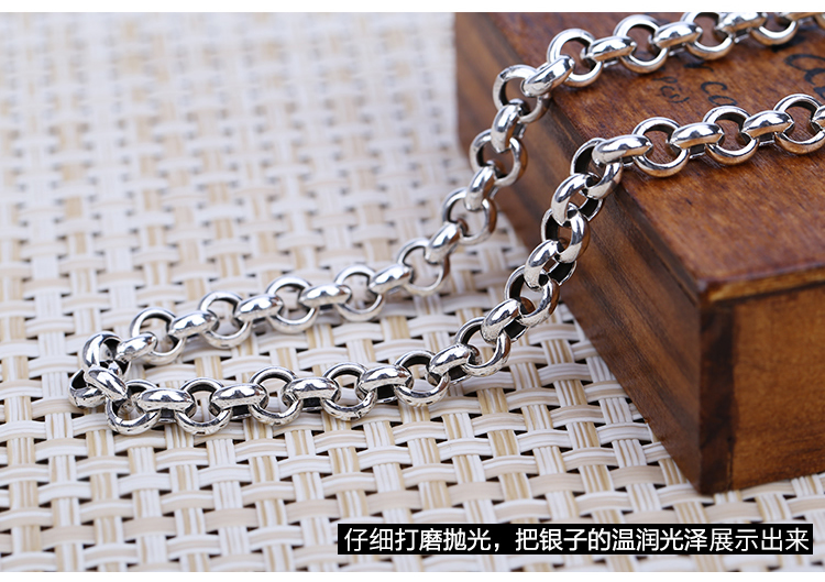 泰銀復古毛衣鏈純銀項鏈 做舊 男士珍珠925 環套環女4m5m6mm7mm