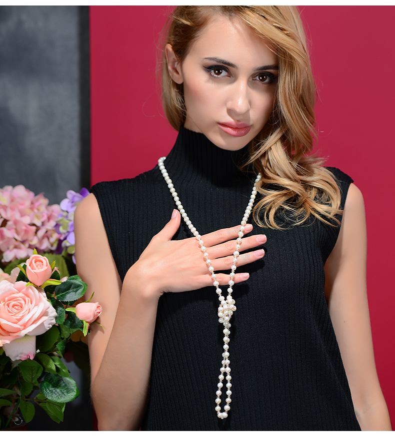 2022新款潮貝殼仿珍珠女長款毛衣鏈