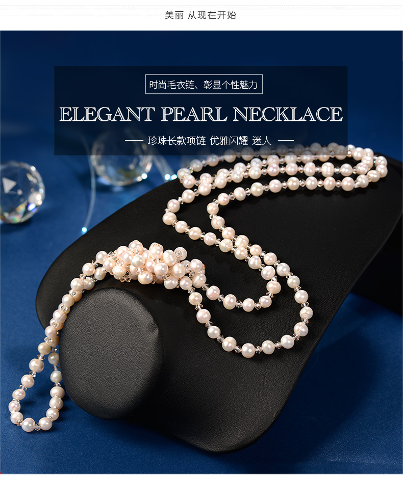 晶柜原創純手工天然珍珠吊墜毛衣鏈