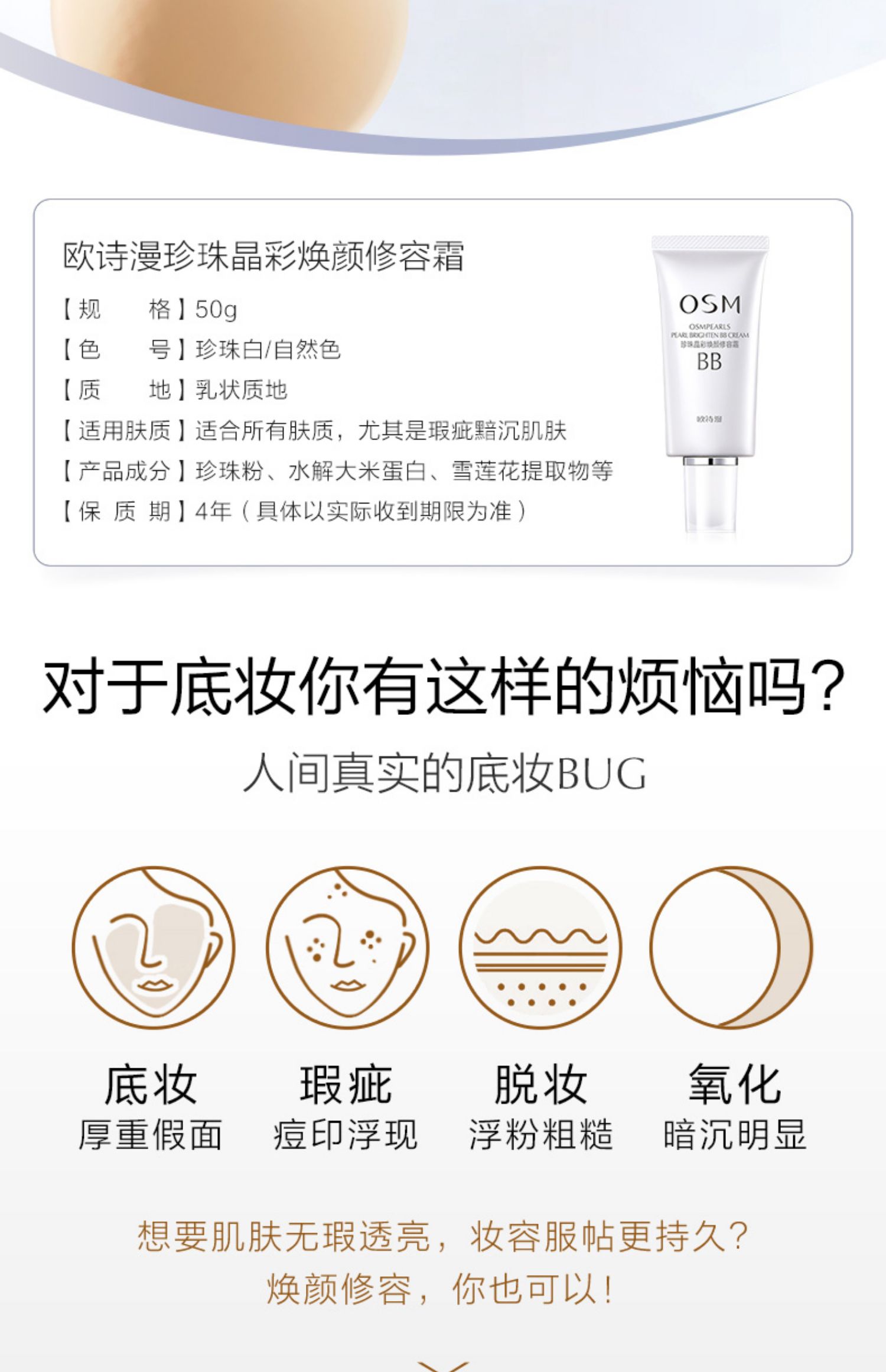 歐詩漫珍珠白煥顏修容霜遮瑕女bb霜