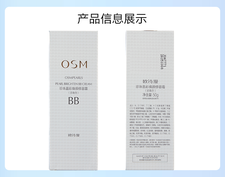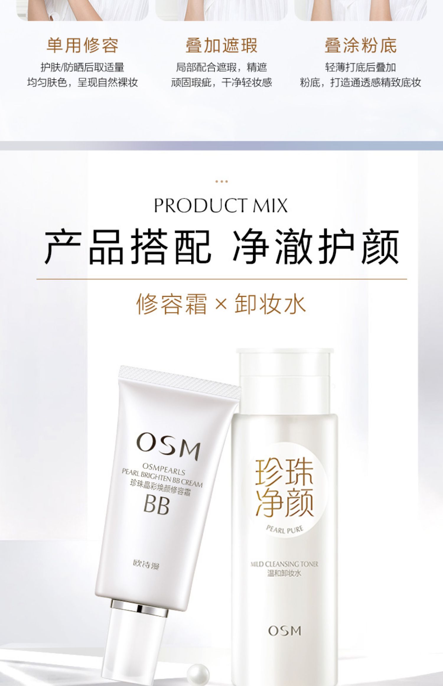 歐詩漫BB霜珍珠白修容霜保濕隔離遮瑕美白裸妝粉底液女旗艦店正品