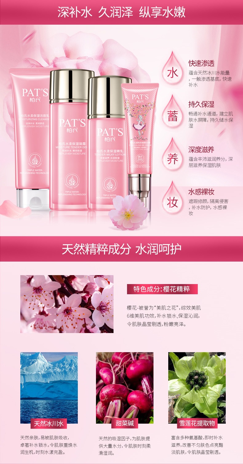 柏氏花漾水柔保濕補水套裝雪肌晶透柔膚水乳液修顏BB面霜正品女