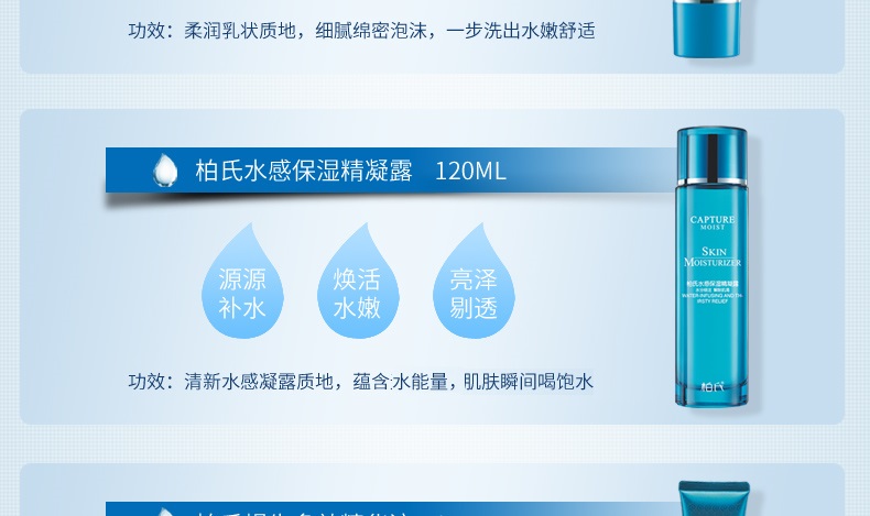 柏氏水感保濕套裝補水亮顏至美禮裝精凝露精華乳面霜爽膚水正品女