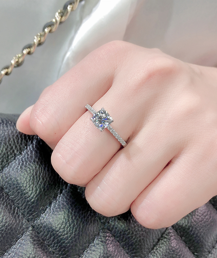 18K莫桑石戒指公主方形鉆戒女925銀方形仿鉆石1克拉訂婚結婚戒指