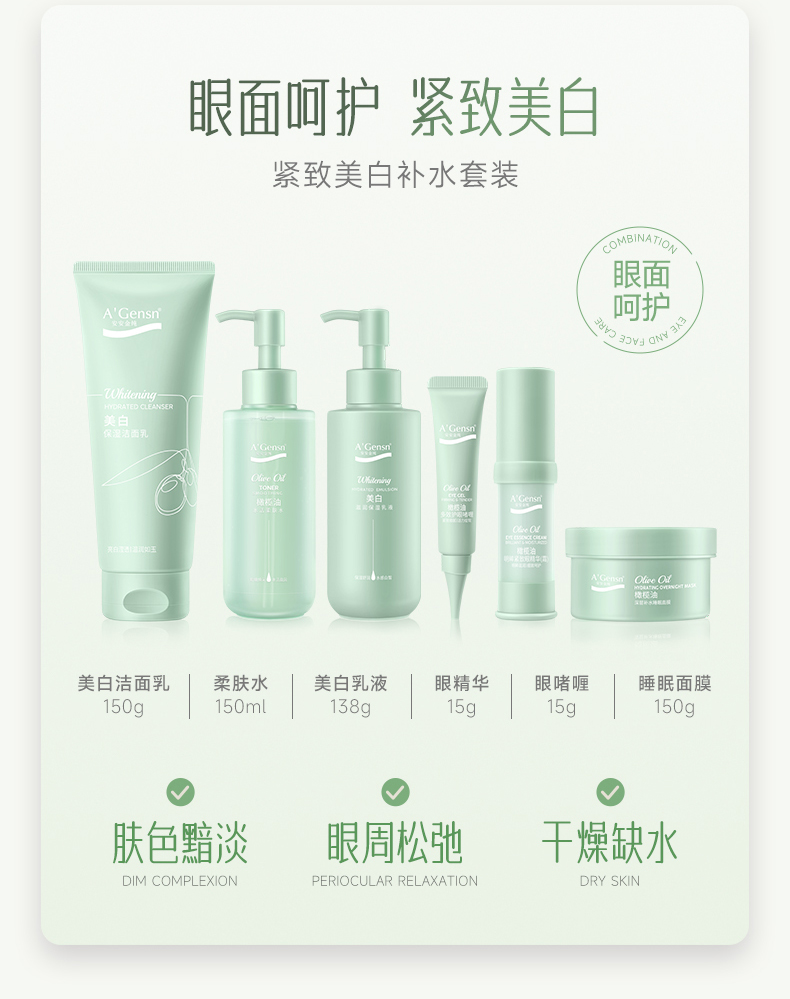 安安金純橄欖油護膚化妝品補水保濕面部護理套裝乳液面膜霜柔膚水