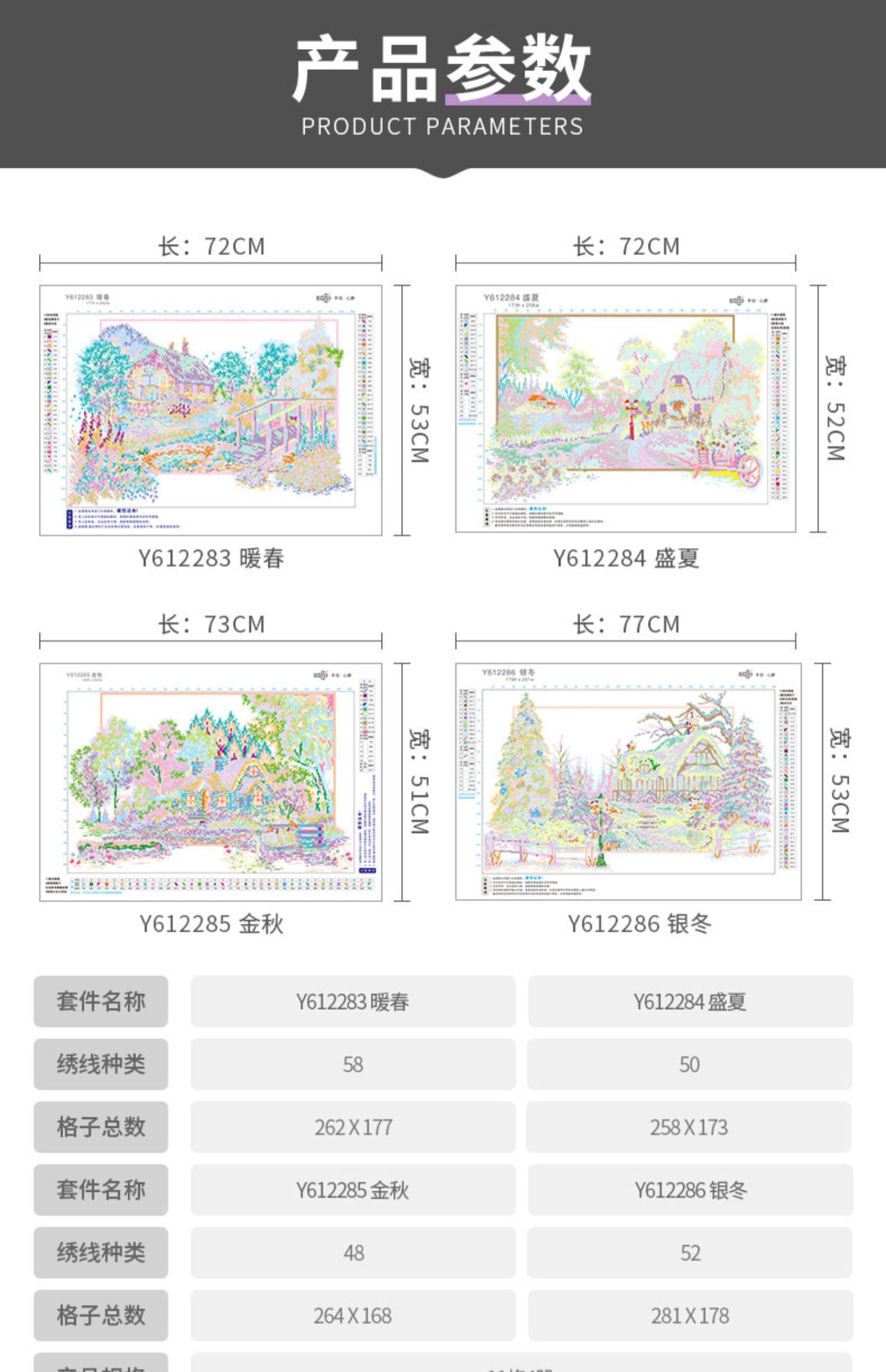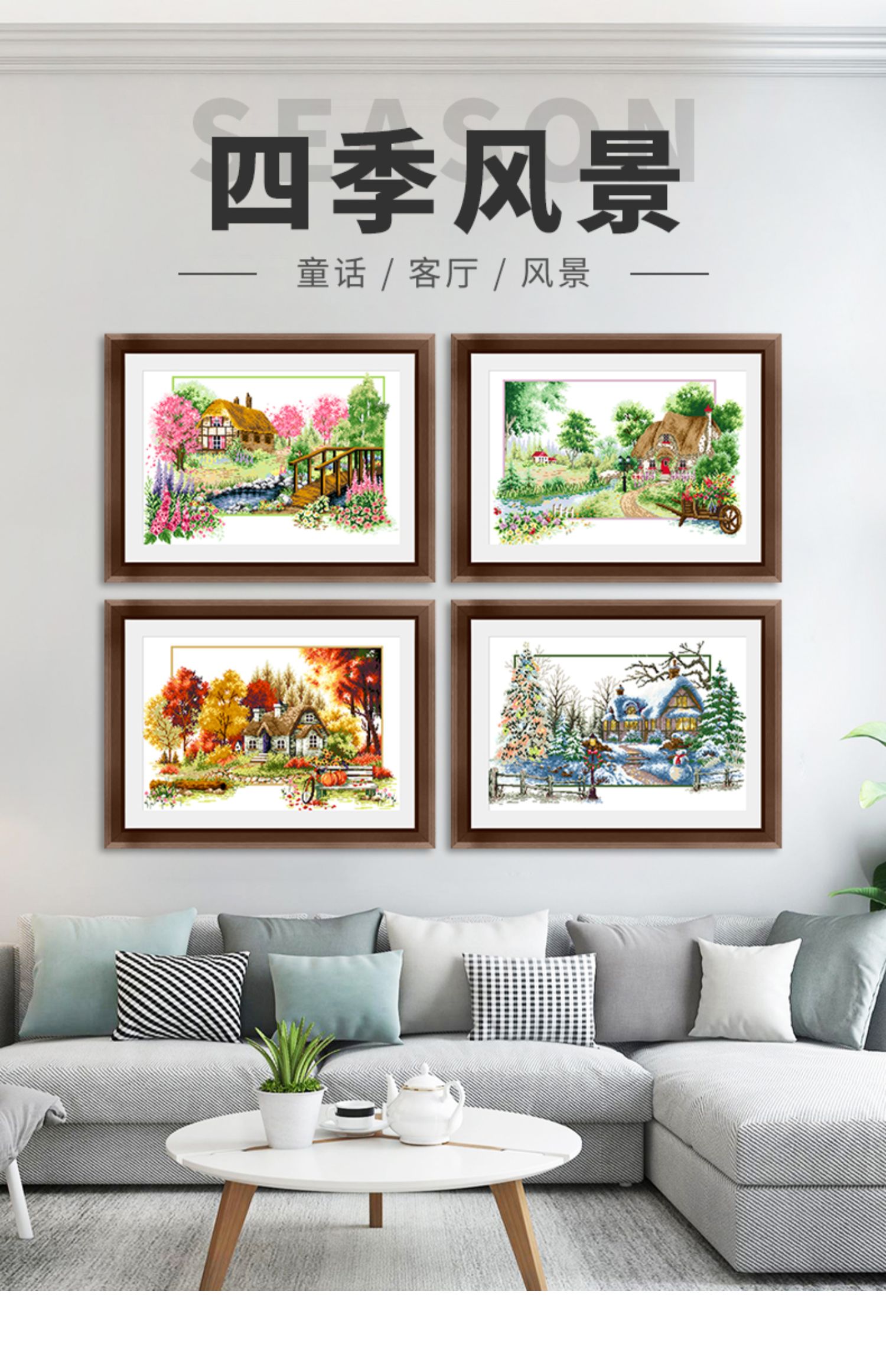 KS十字繡2023新款線繡棉線客廳四季多聯裝飾畫春夏秋冬手工自己繡