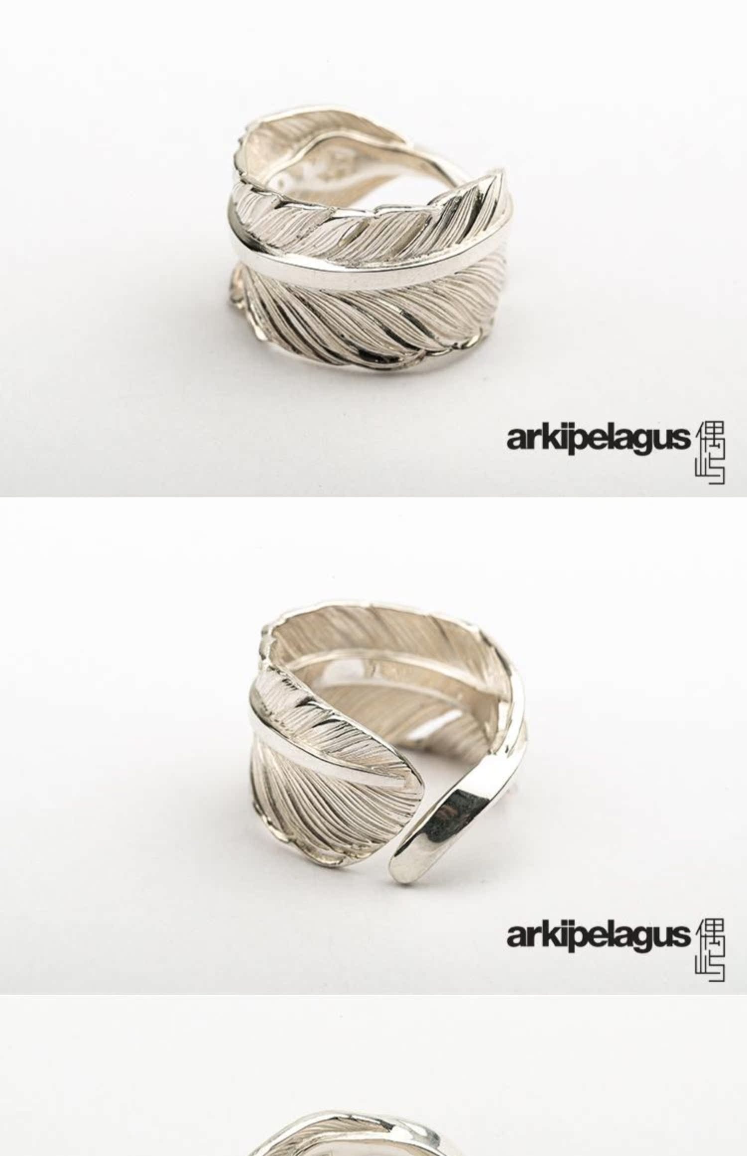 偶嶼原創純銀羽毛戒指粗桿可刻字開口戒超大指圍小眾個性首飾男女