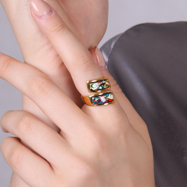 畢加索鏡前女琺瑯彩釉時尚個性指環