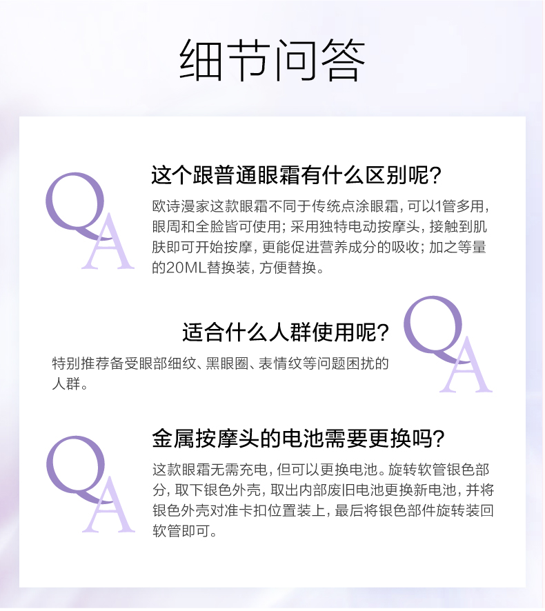 歐詩漫電動按摩眼霜正品改善眼袋黑眼圈細紋緊致眼周保濕眼精華女