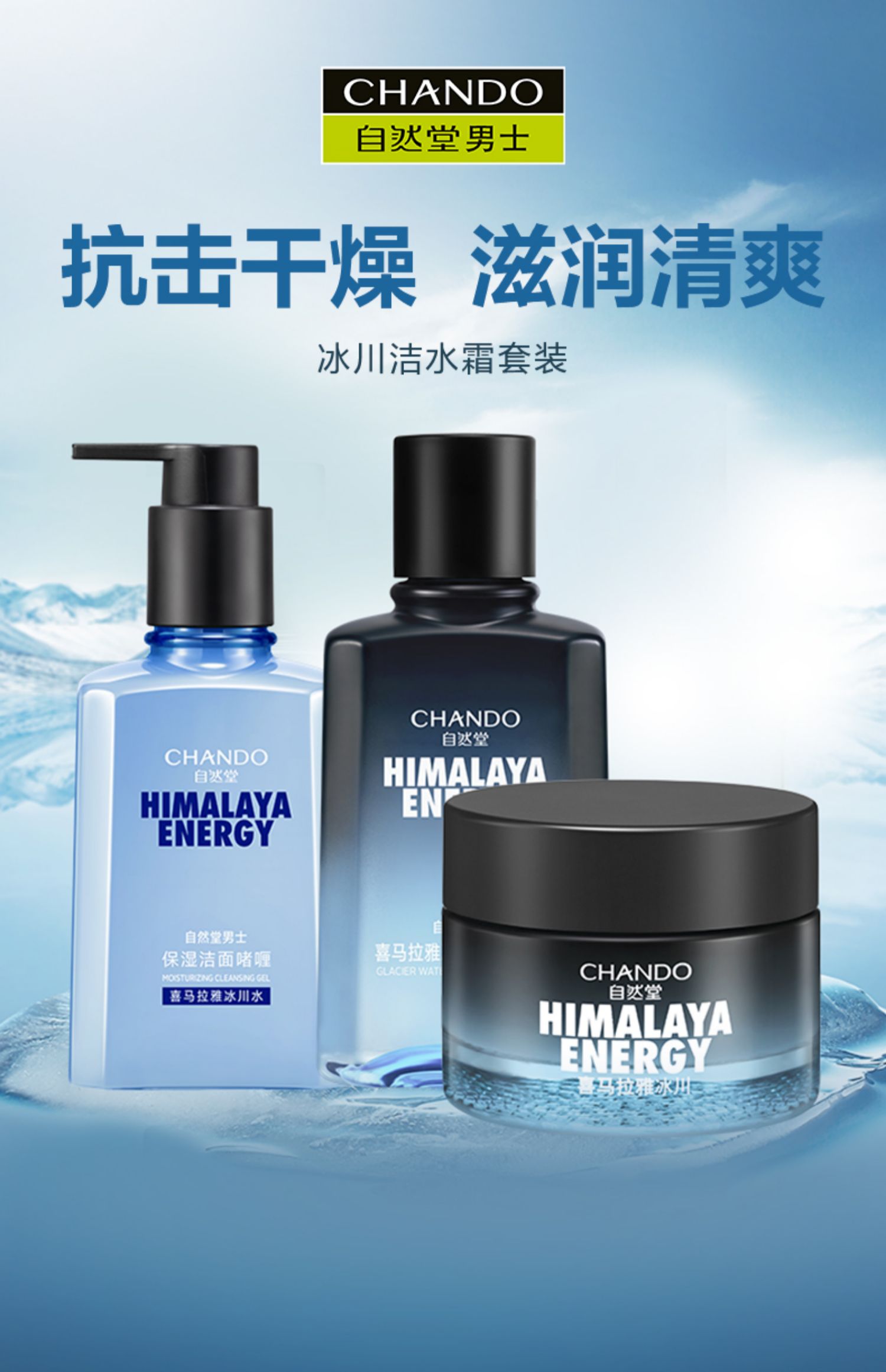 自然堂男士專用護膚品套裝冰川保濕露洗面奶清爽補水官方旗艦正品