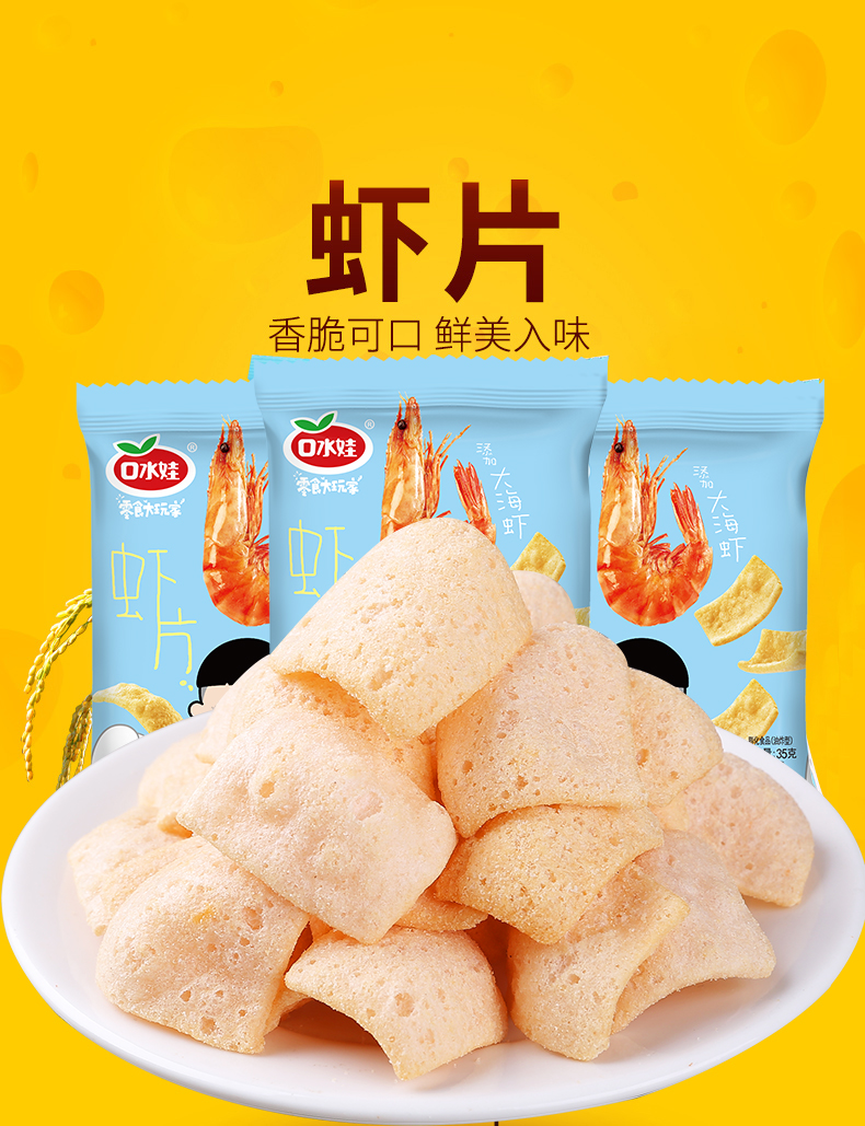 口水娃蝦片35g*4袋吃貨小零食油炸薯片休閑零食辦室休閑膨化食品