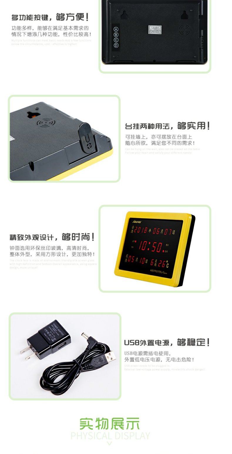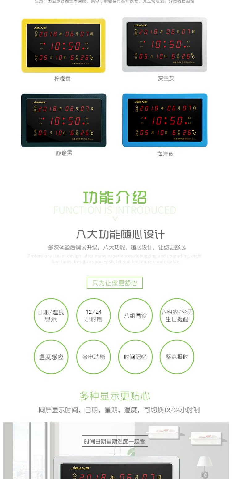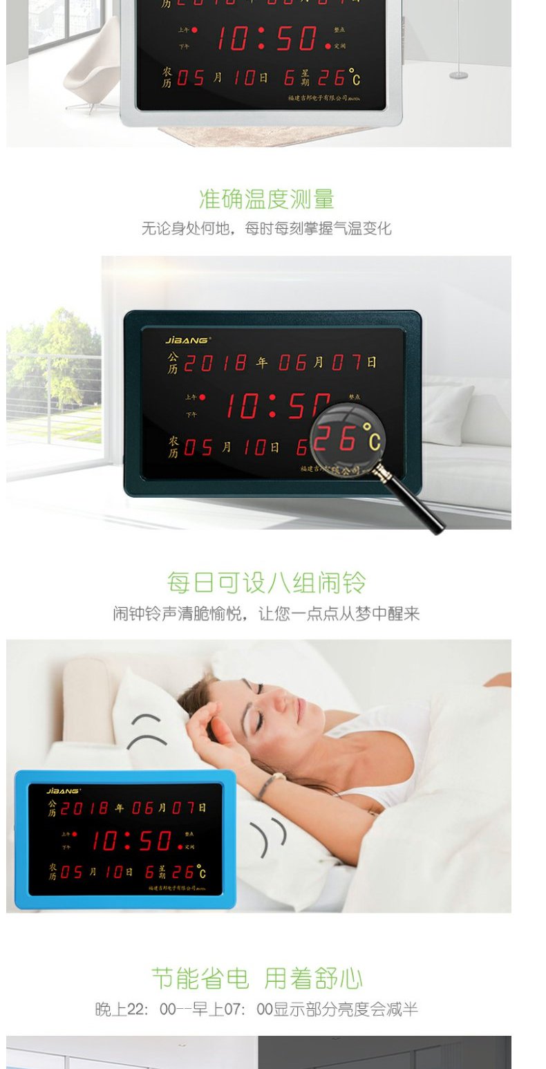 萬年歷液晶數字靜音家用客廳夜光鐘