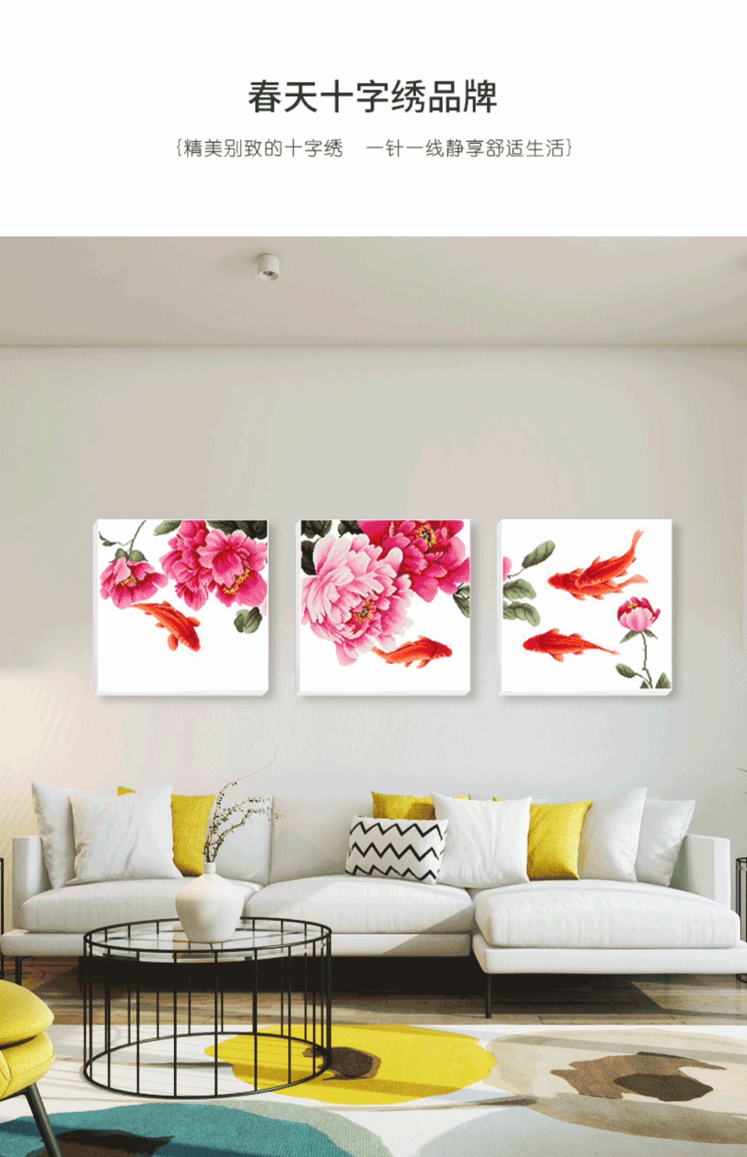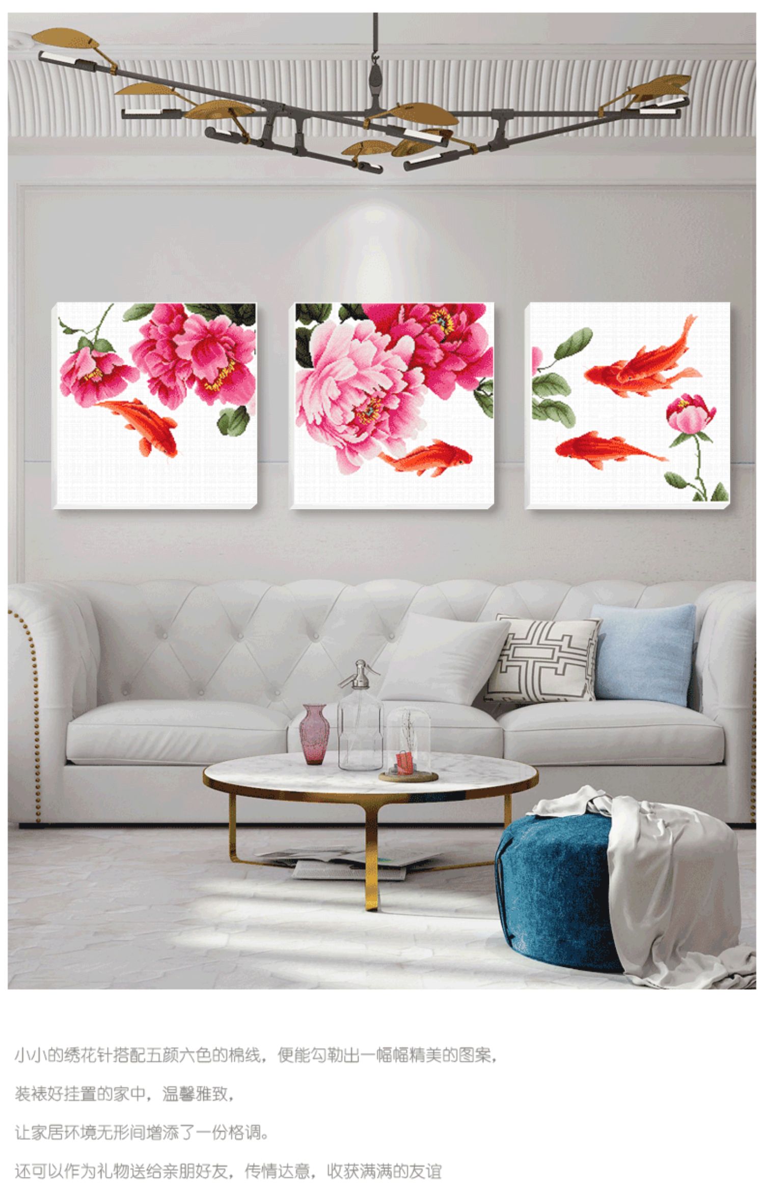 十字繡2023新款線繡三聯畫牡丹花自己繡手工客廳臥室簡單簡約現代