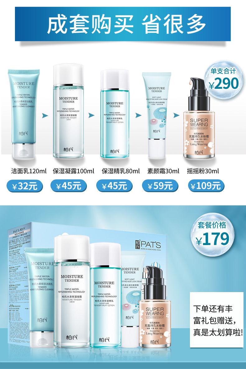 柏氏化妝品官方旗艦店正品補水保濕水乳套裝適合學生的護膚品官網