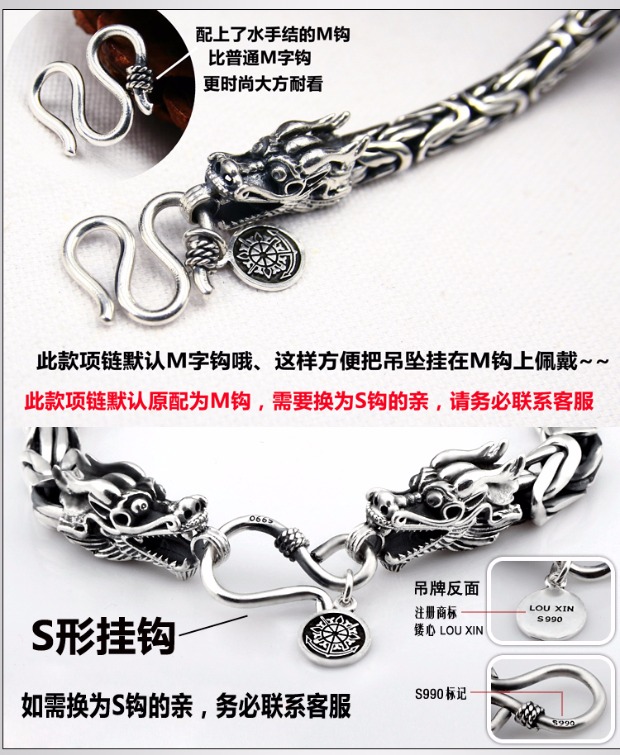 古晶純銀男士霸氣龍頭粗99足銀項鏈