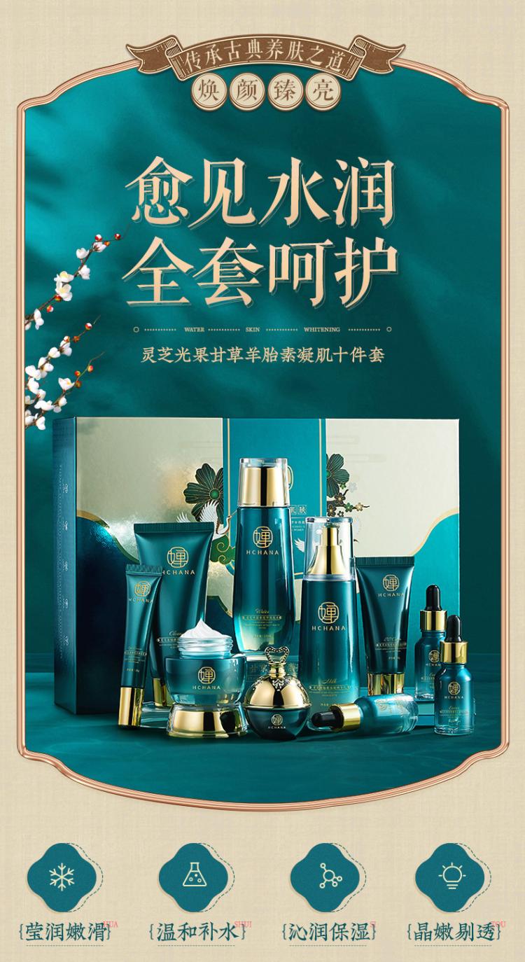 hchana韓嬋靈芝羊胎素十件套緊致補水護膚品套裝旗艦官網正品店