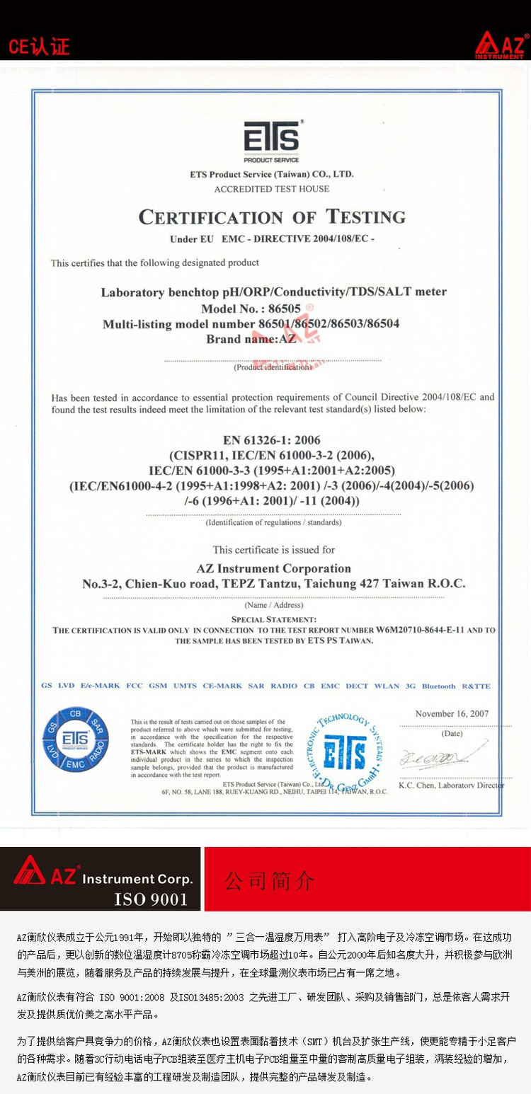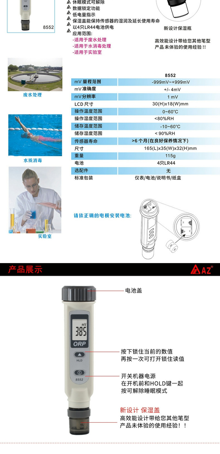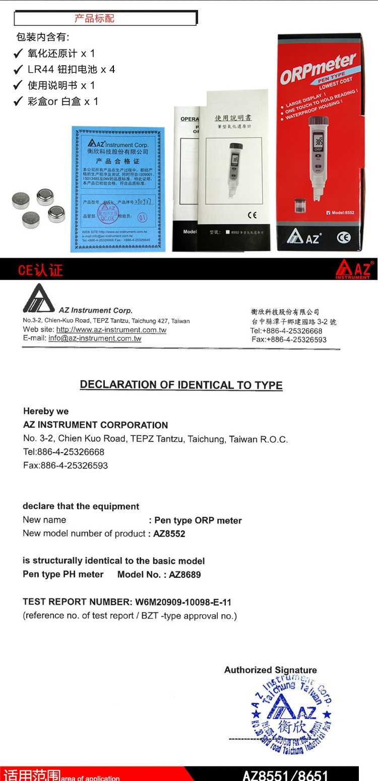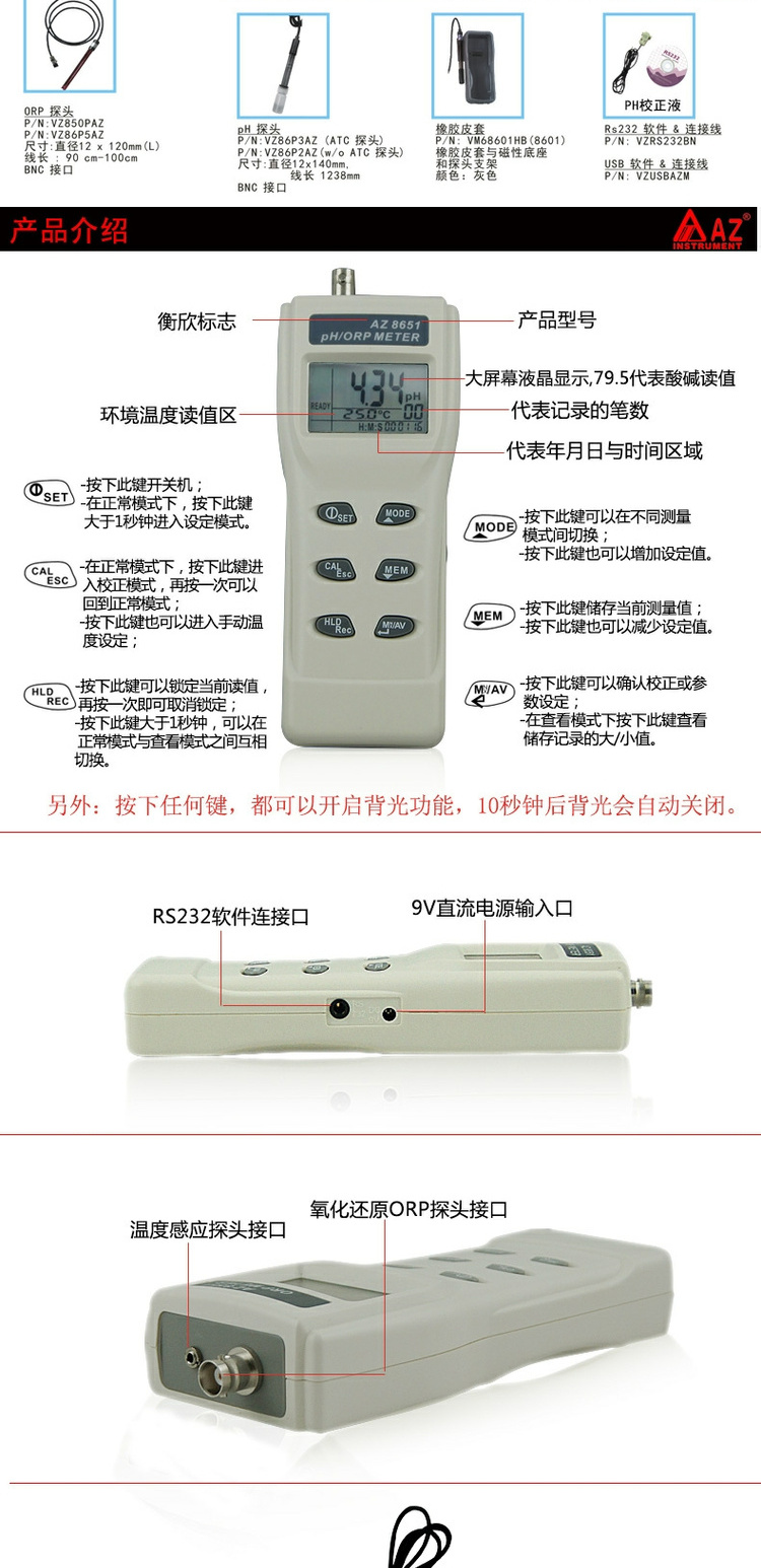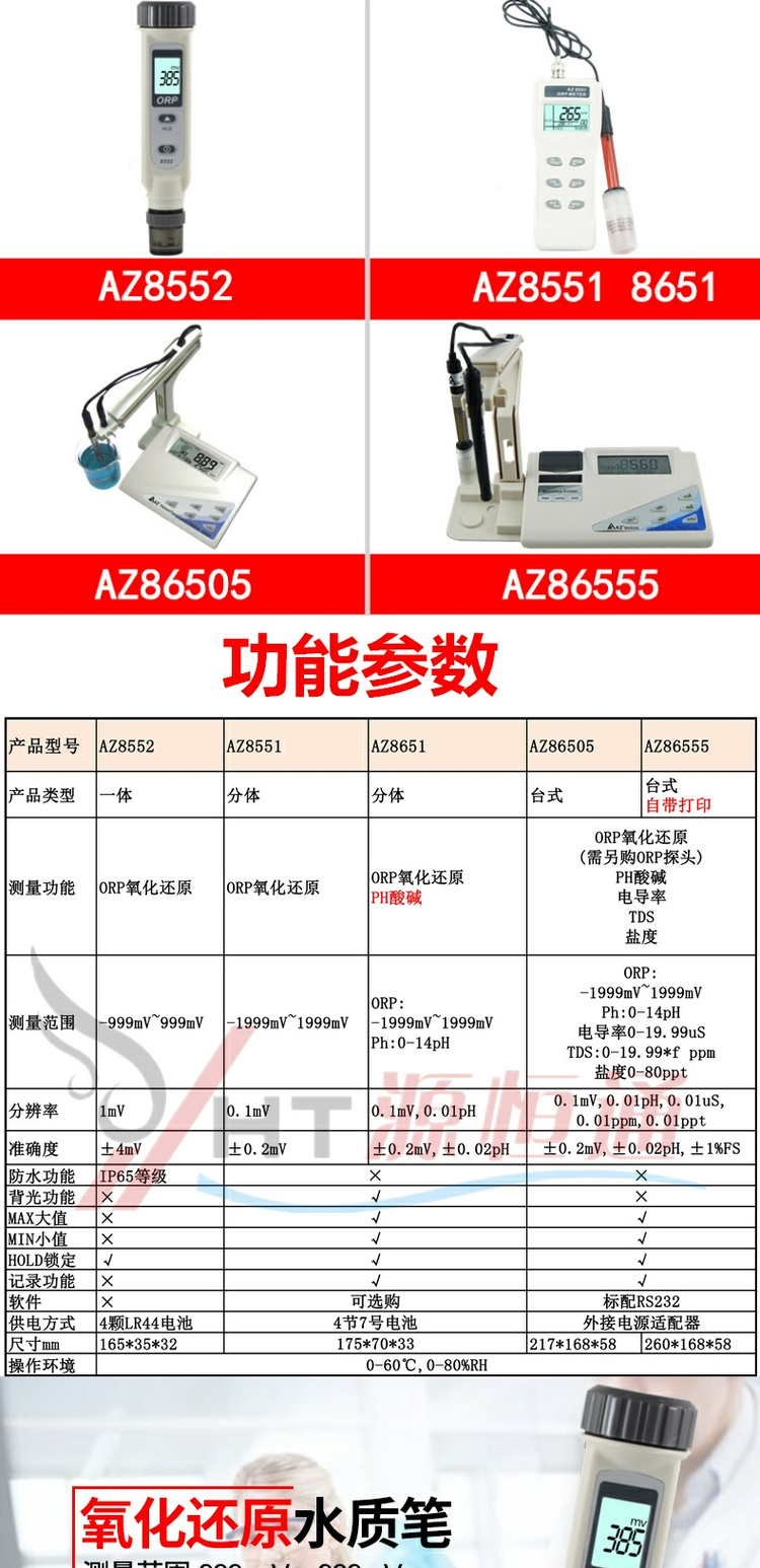 臺灣衡欣ORP氧化還原電位計測定儀AZ8651/8551/8552/86505/86555