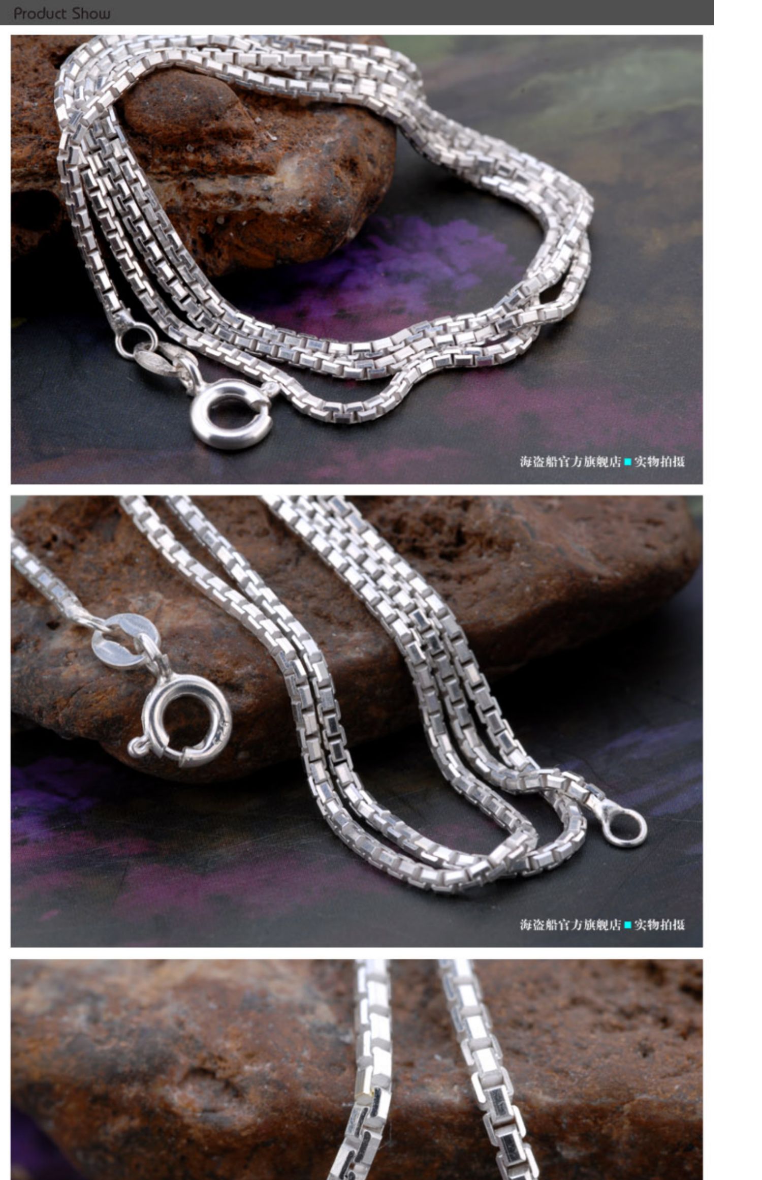 海盜船飾品 方形切割面環套環盒子項鏈 銀飾品 925銀 (粗款)