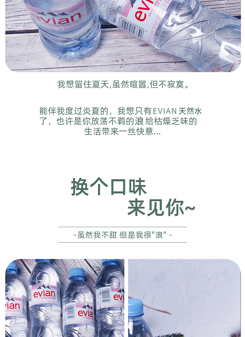 evian依云礦泉水330ml/500ML整箱24瓶法國進口高端天然飲用水