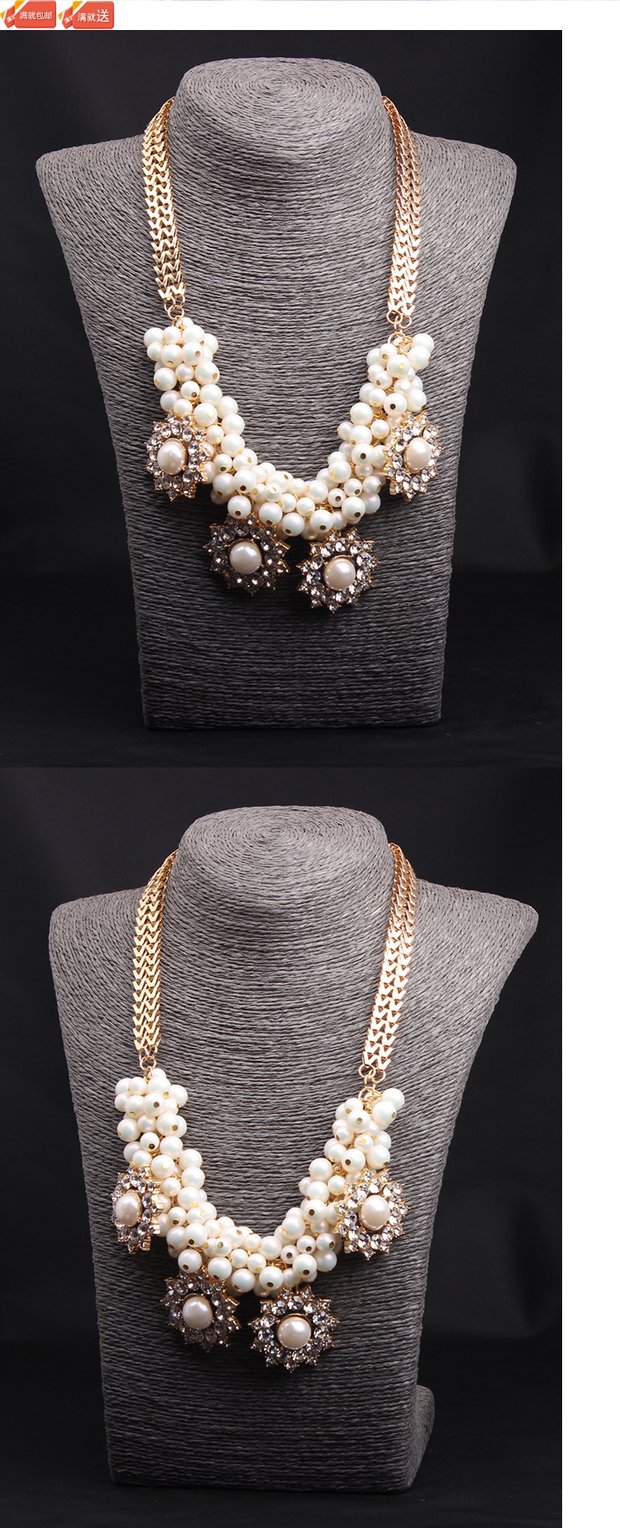 日韓國韓版夸張珍珠編織短款毛衣鏈