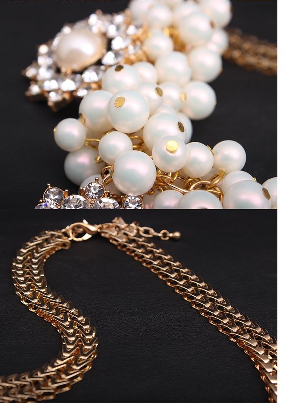 歐美時尚裝飾品項鏈 透明水鉆珍珠寶石短款鎖骨鏈女配飾品毛衣鏈