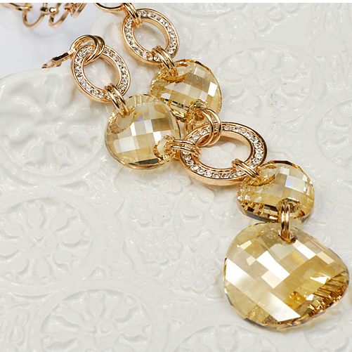 洛曼詩茶金色方水晶短款春夏鎖骨鏈