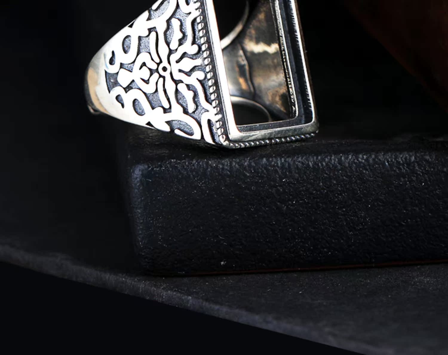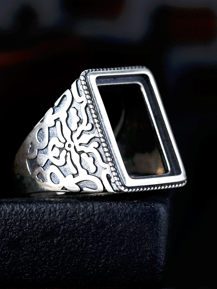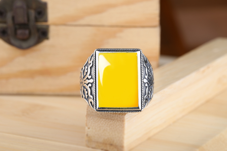 925銀男戒托鑲嵌蜜蠟綠松封底戒指