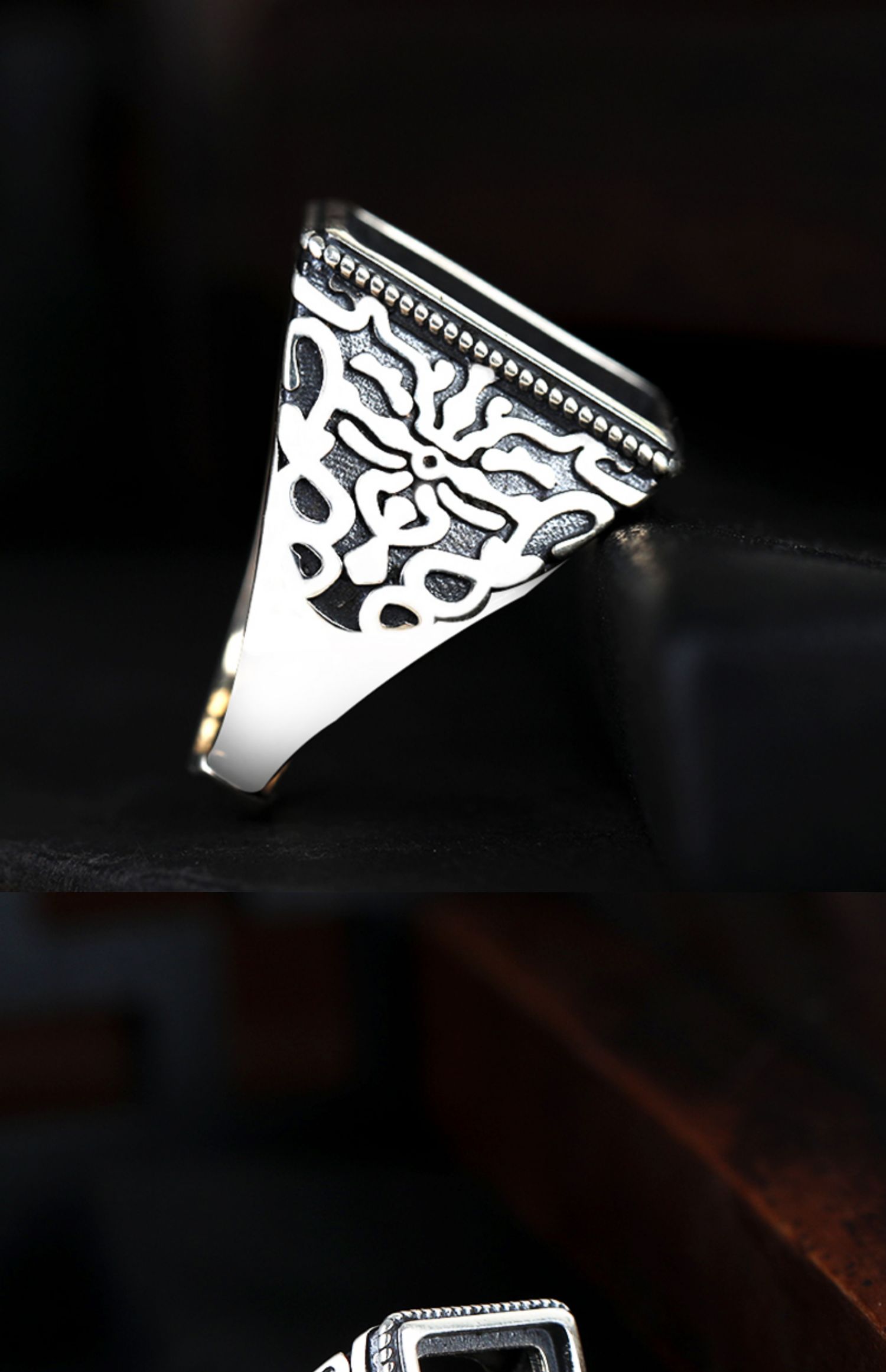 S925純銀戒指空托男士diy鑲嵌蜜蠟琥珀綠松石戒面長方形戒托12*17