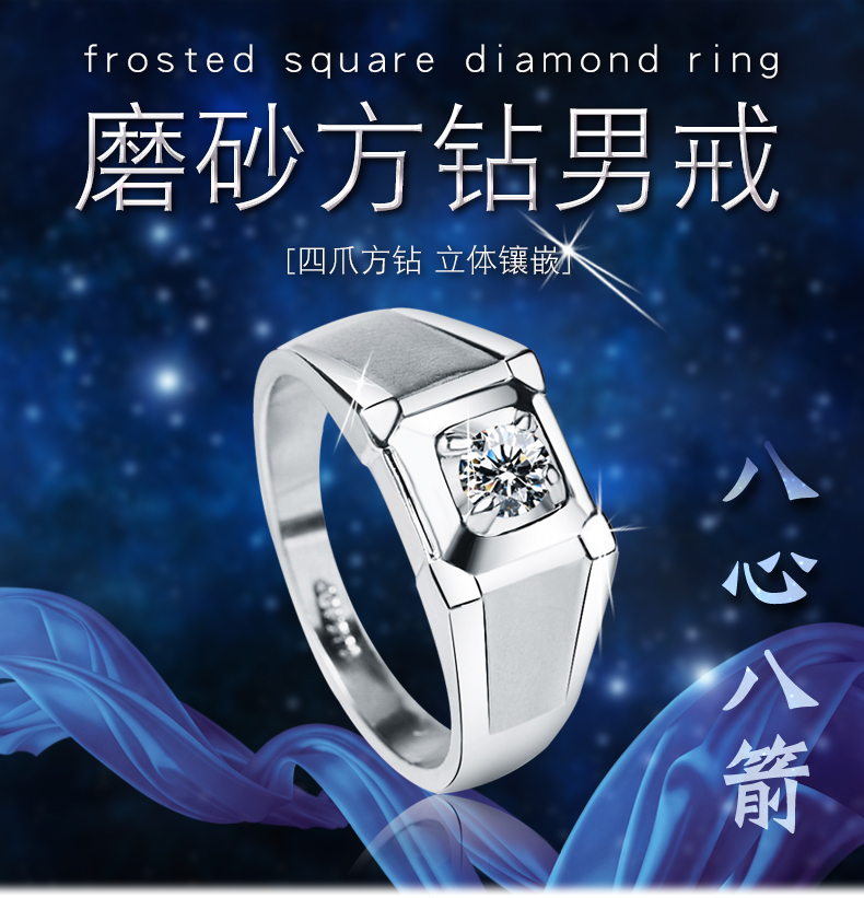 男士一克拉莫桑鉆結婚霸氣仿真鉆戒