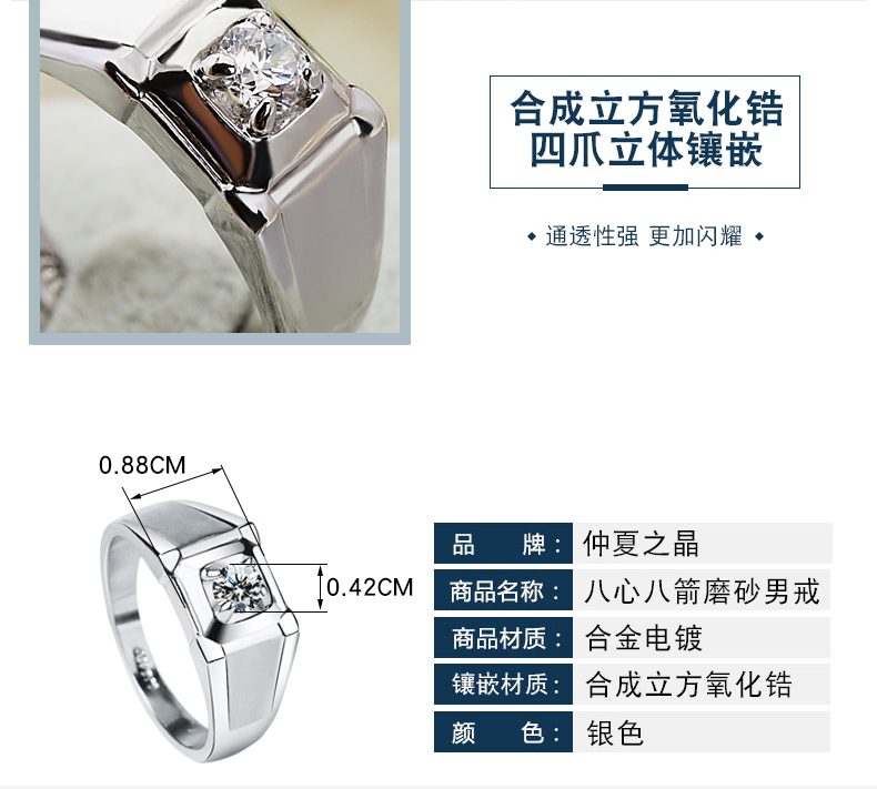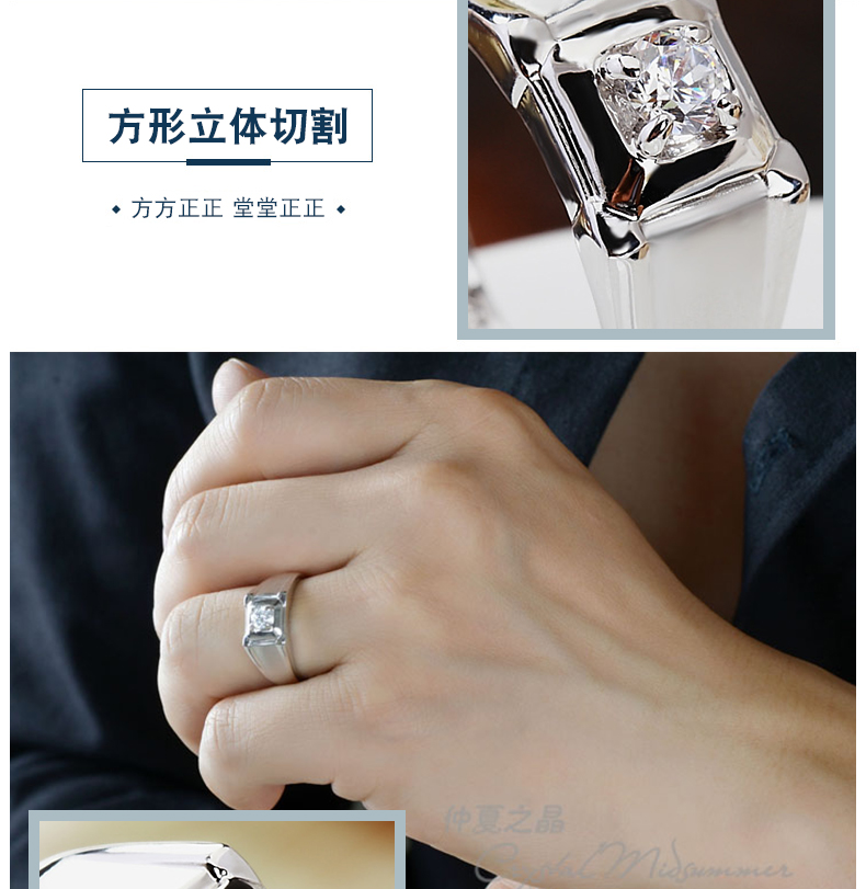 戒指男潮仿鉆戒仿真莫桑石結婚男士單身戒單男款ins50分仿鉆男戒