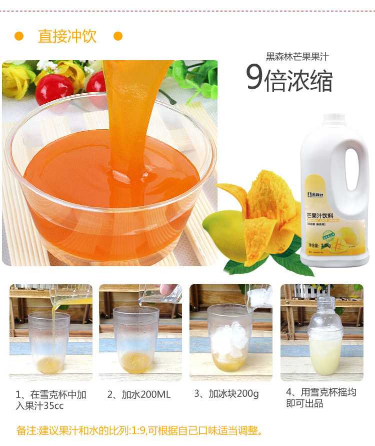 奶茶原料鮮活 濃縮高倍果汁黑森林芒果汁濃縮風味飲料濃漿2.2kg