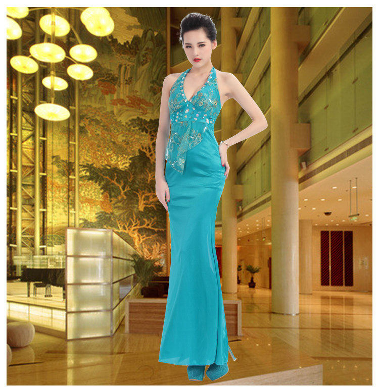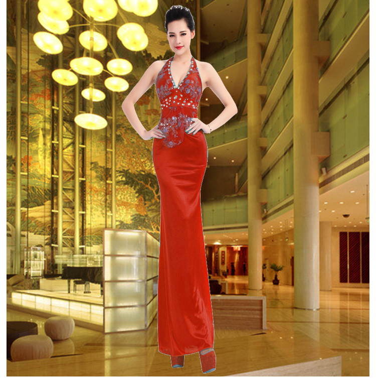 深v掛脖2023新款低胸修身女晚禮服