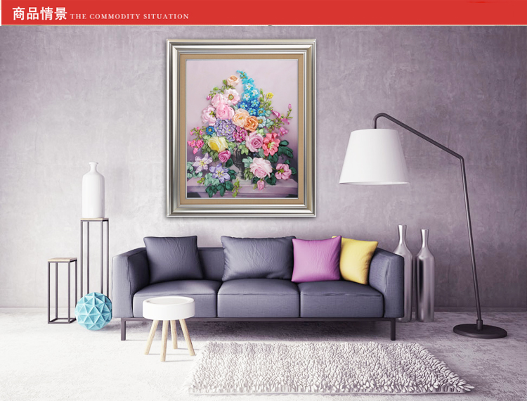 彩帶秀絲帶繡新款立體繡十字繡手工刺繡diy材料包歐式花卉掛畫