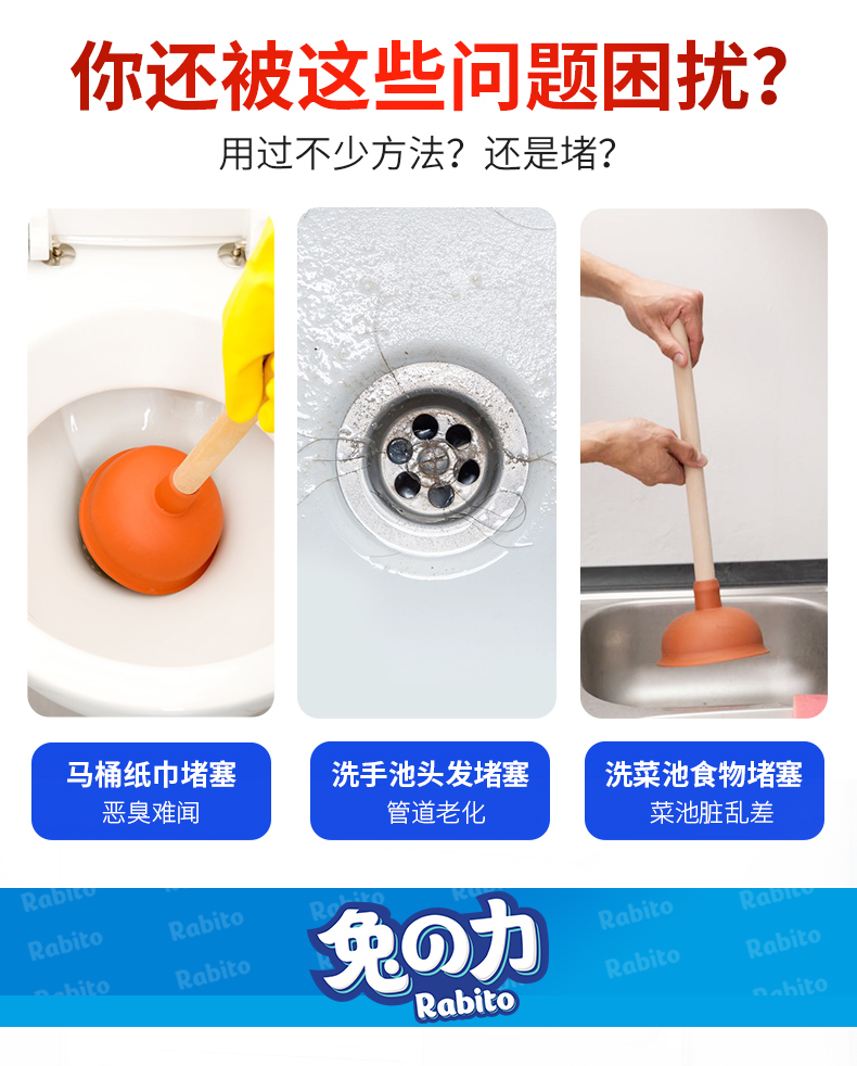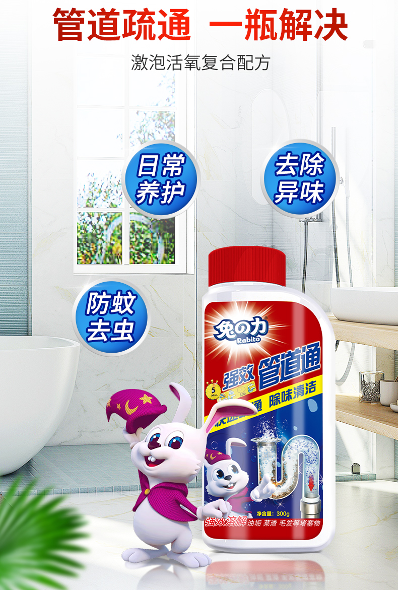 強力管道疏通劑通廚房下水道疏通劑通馬桶堵塞通廁所衛生間兔之力
